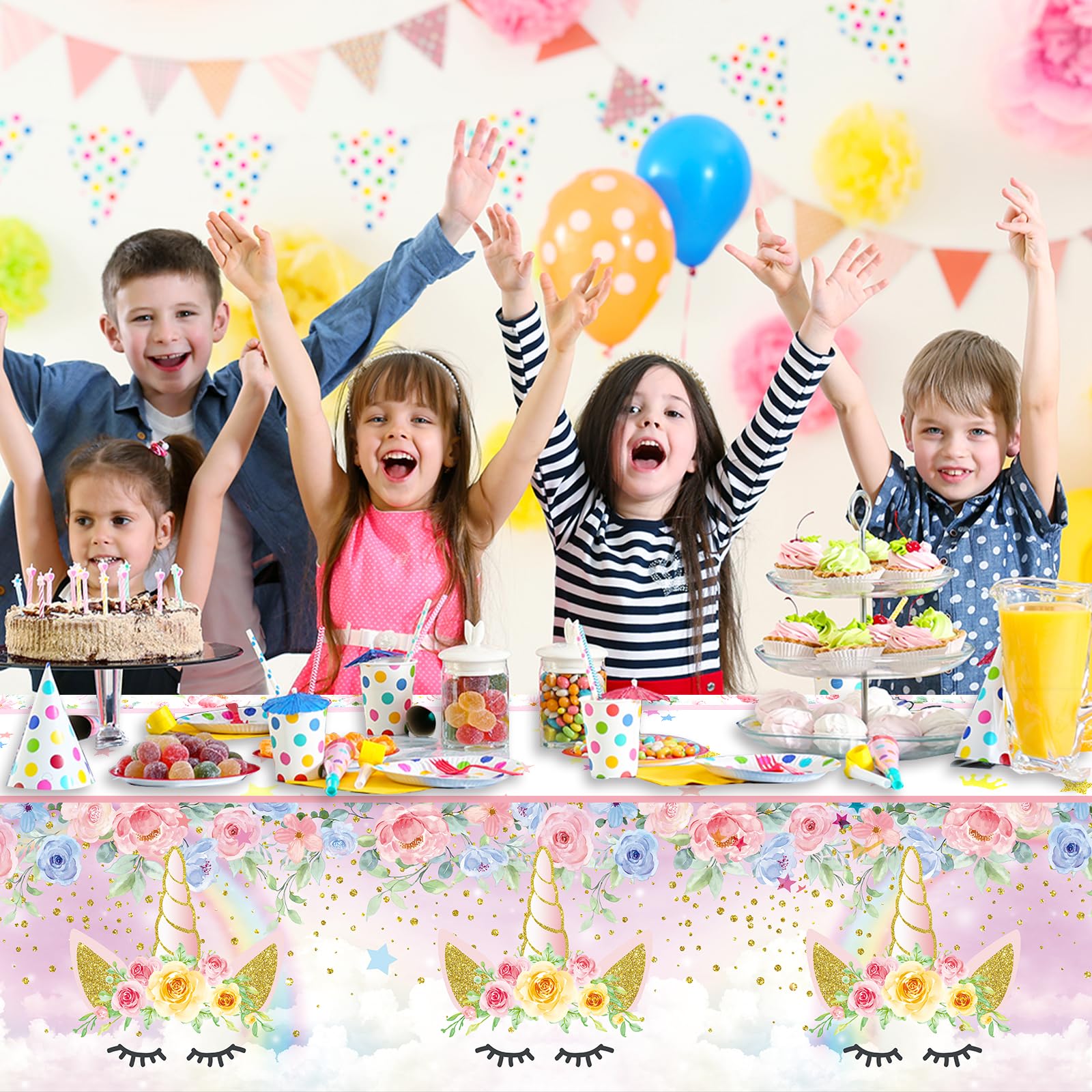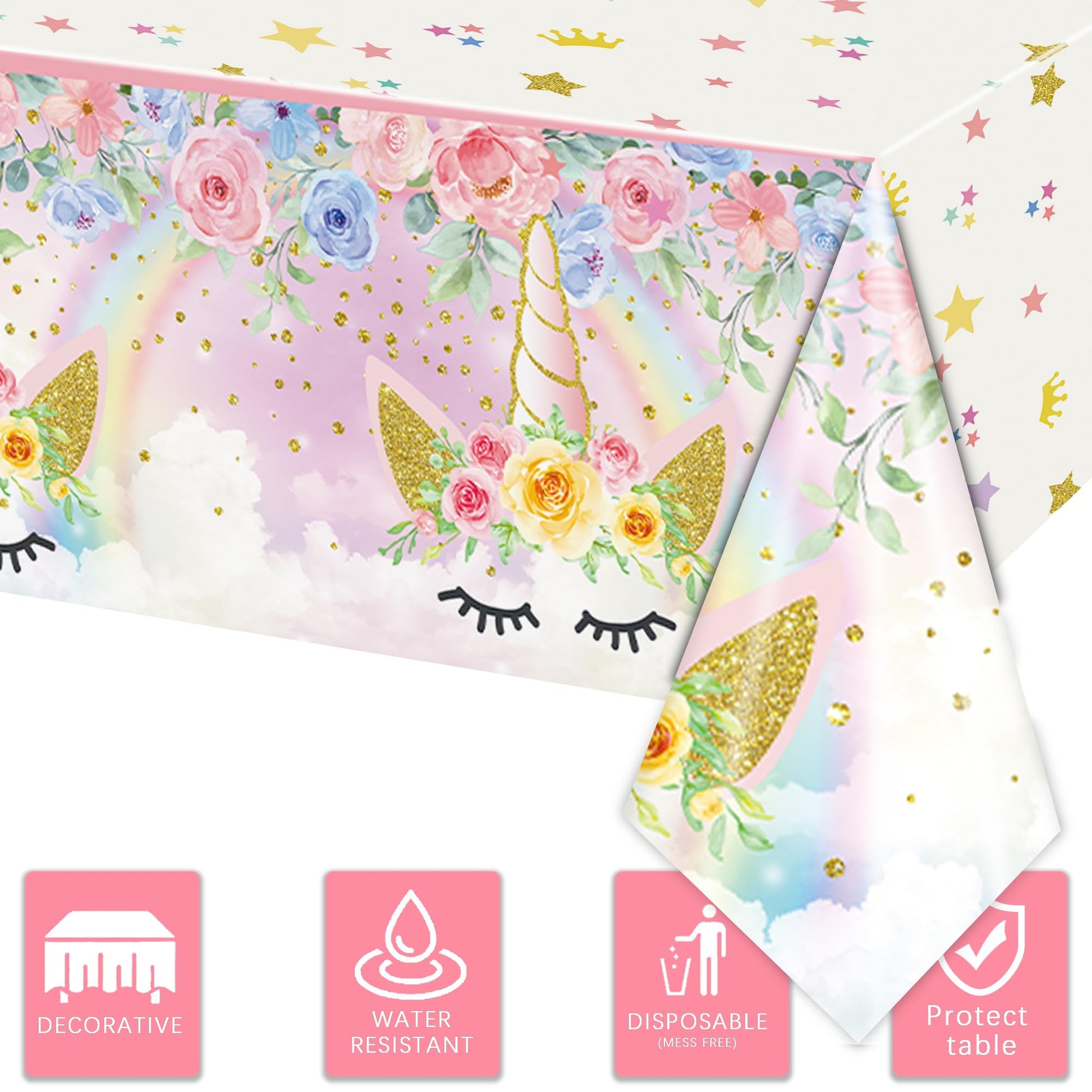 Rejoice Bunny 3Pcs Unicorn Tablecloths For Kids Girls Baby Shower 1St Birthday Party Decorations Pink Wonderland Rainbown Themed