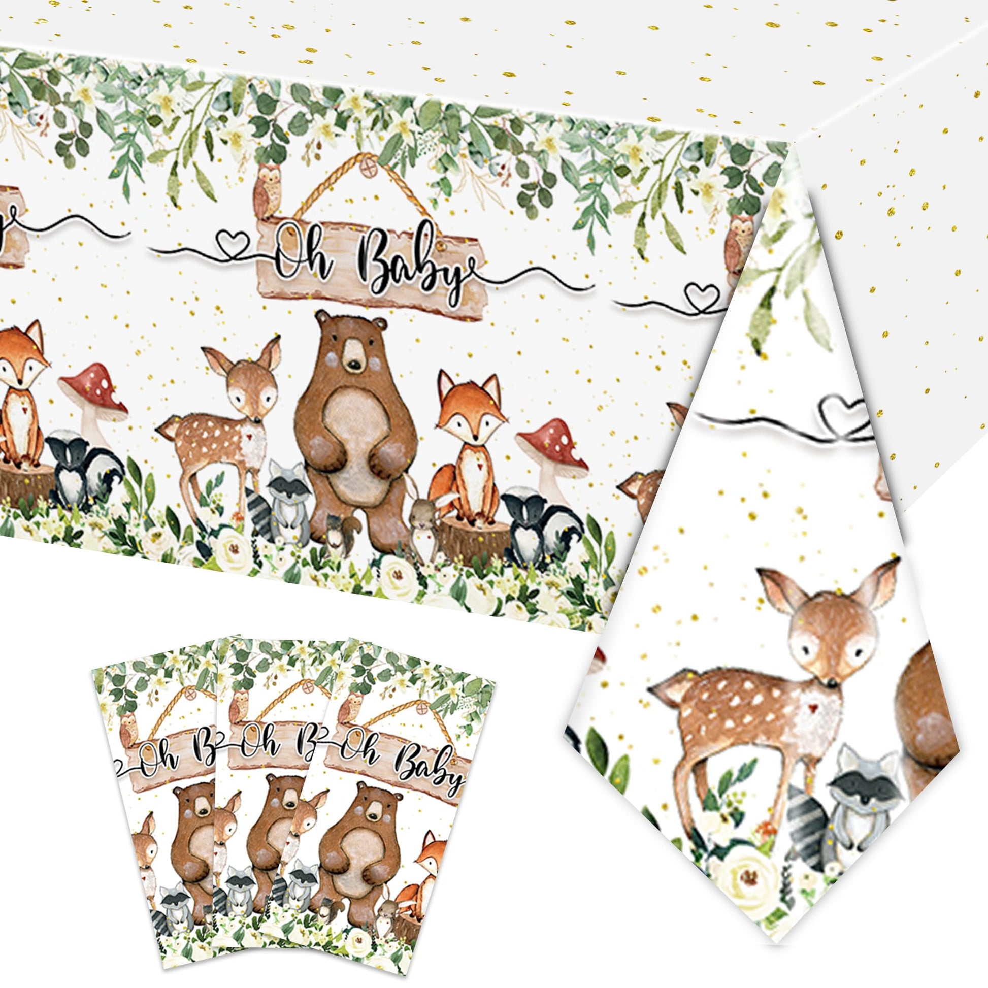 Rejoice Bunny 3Pcs Woodland Baby Shower Tablecloth Boys Girls Safari Jungle Wild Animal Party Decorations Nature Sage Forest Tab
