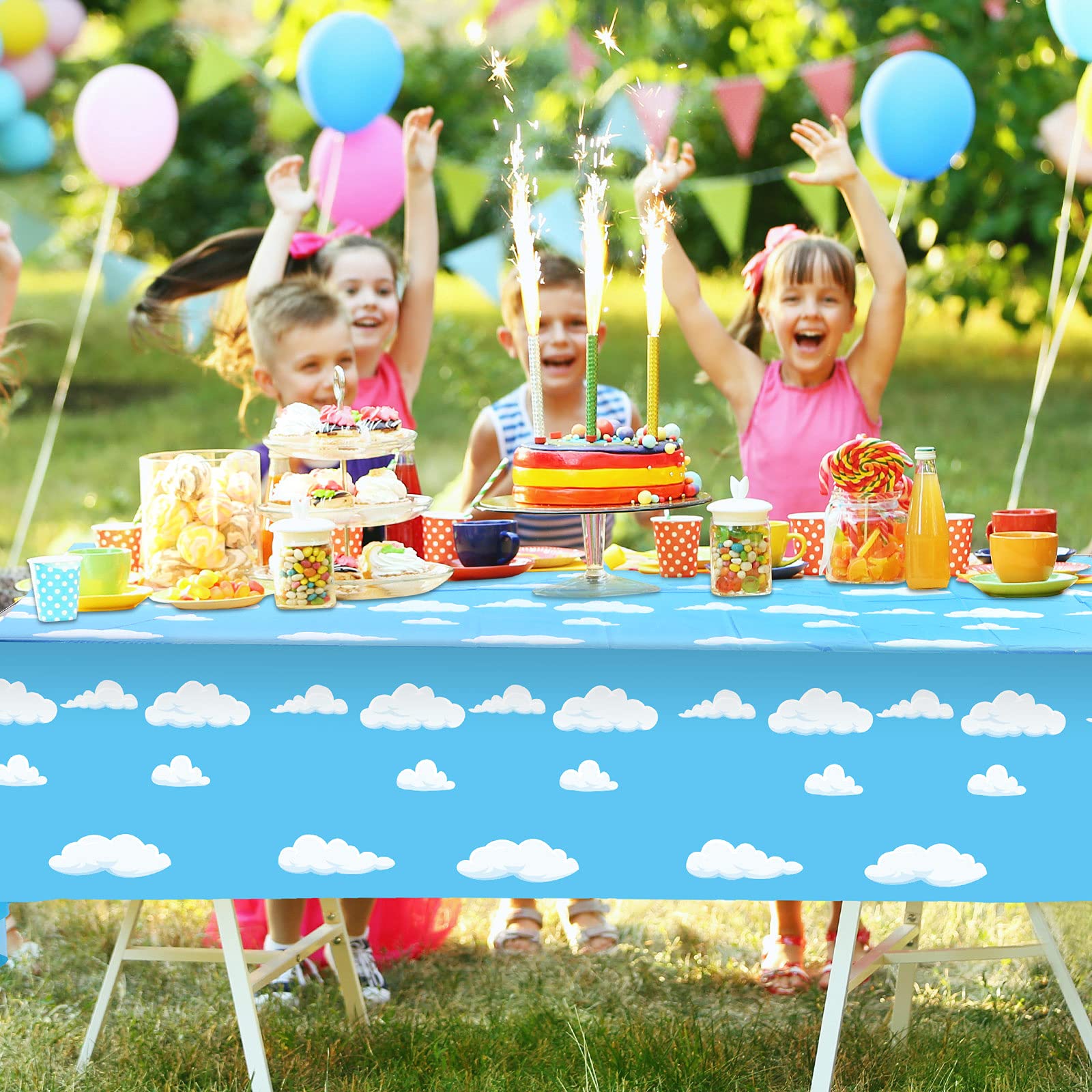 Tatuo Blue Sky White Clouds Birthday Party Supplies Cartoon Story Tablecloth Party Table Cover Cartoon Table Banner For Baby Kids Shower Birthday Decorations, 54 X 108 Inch(1 Piece)