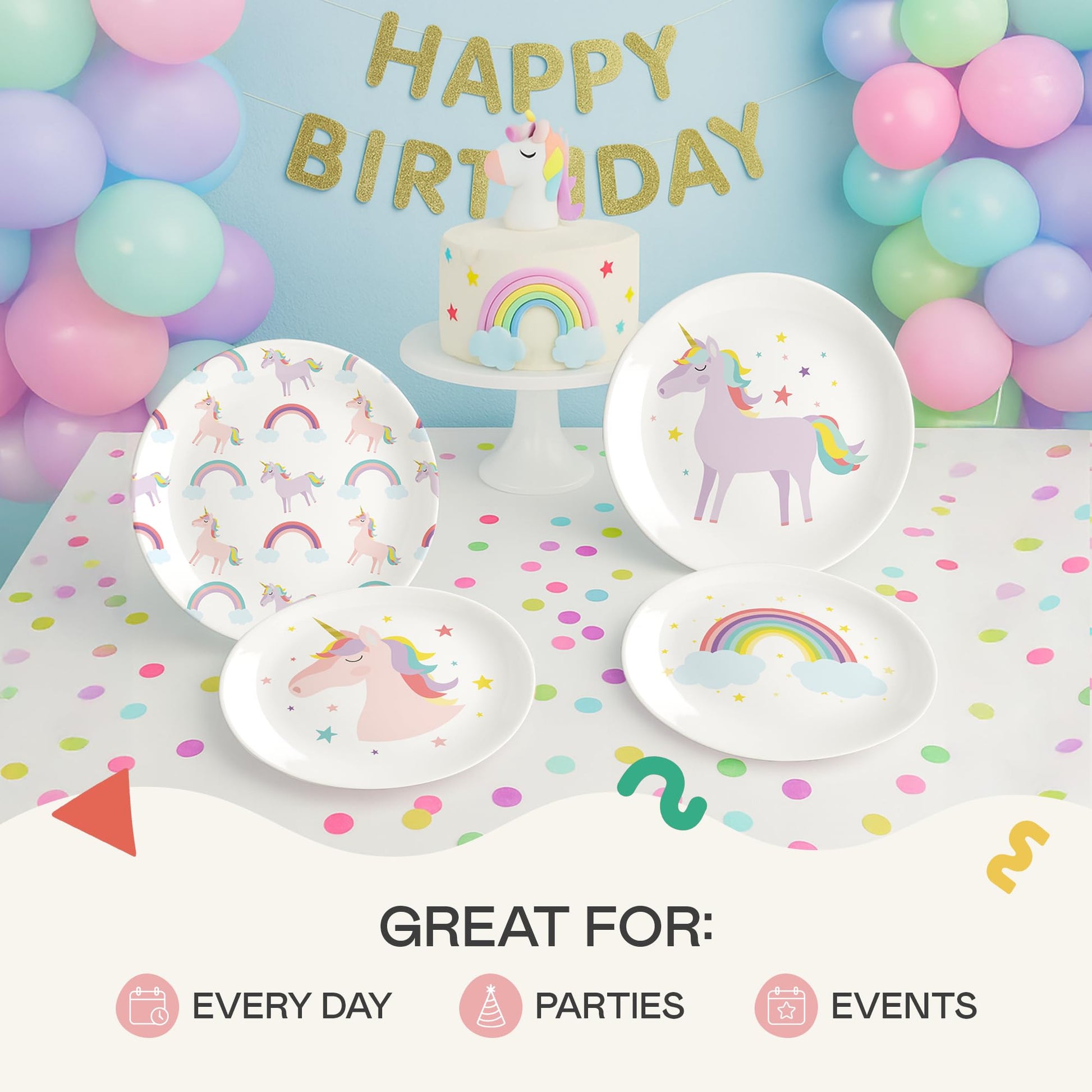 View compareTiny Expressions Unicorn Plates - 10 Set of 4 Reusable Melamine Party Plates with Rainbows, Stars & Whimsical Unicorns - Ideal f