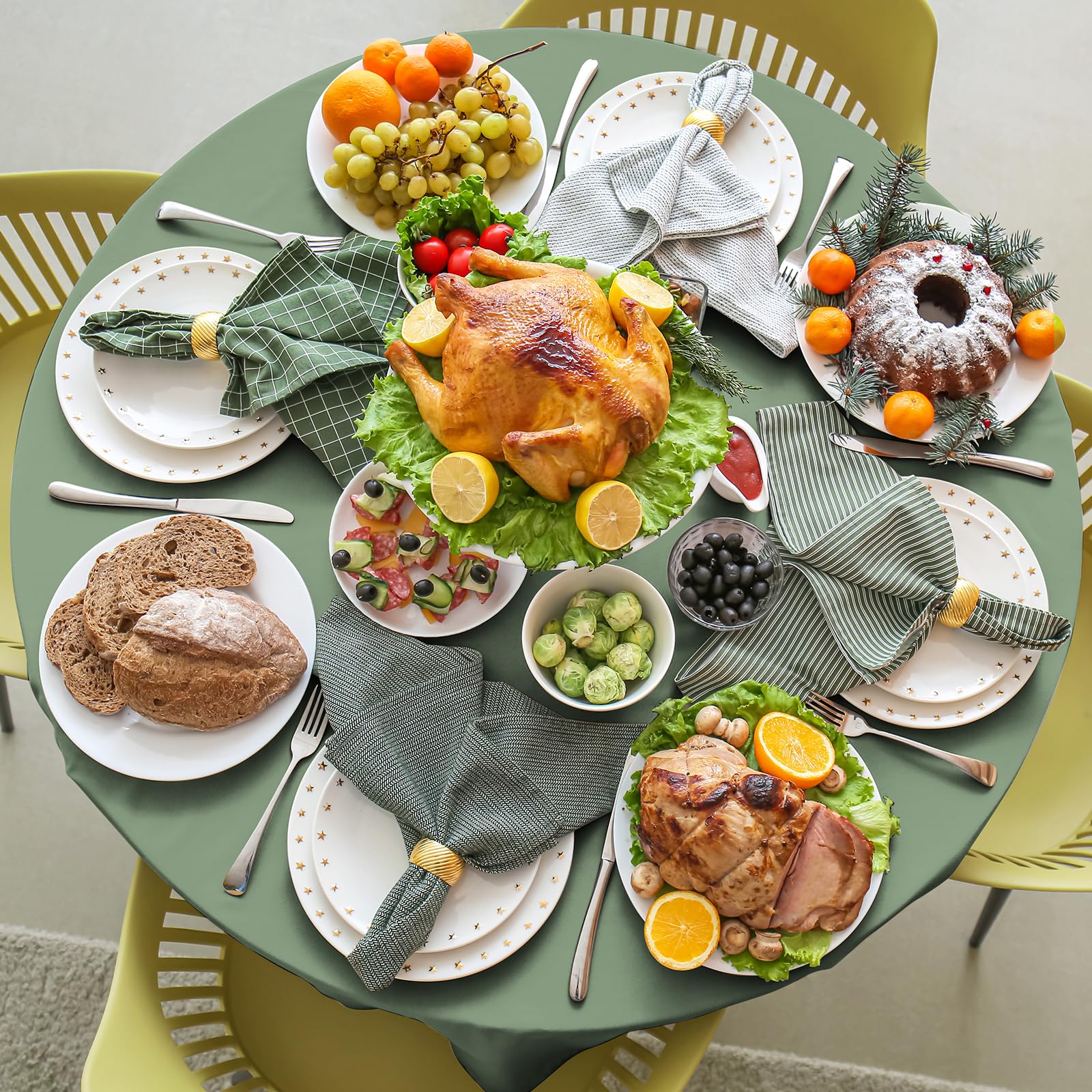 - Q: What are the dimensions of the YIDAKO sage green tablecloths? A: Each round sage green tablecloth measures 84 inches in diameter, making them suitable for most 8-10 seat circular tables.