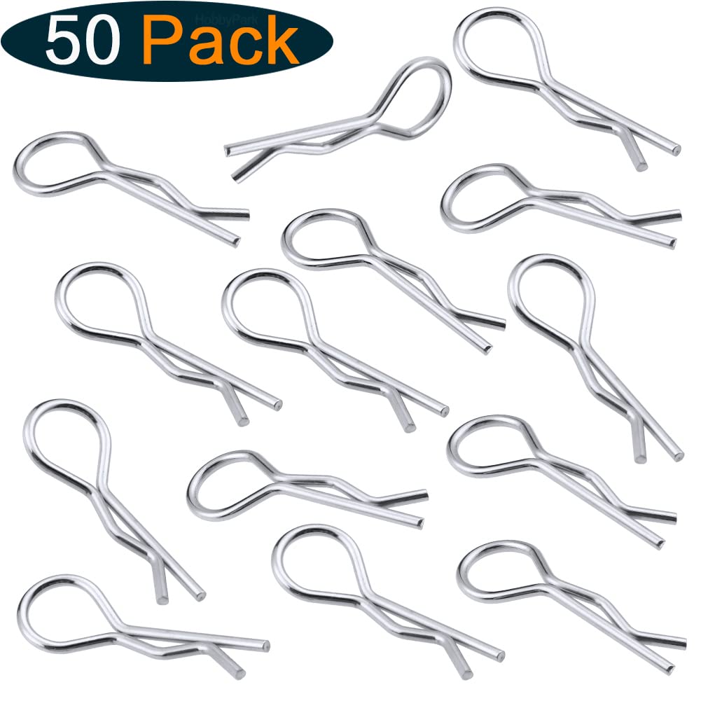 View compare50-Pack HobbyPark Metal 1/12 1/10 Body Clips Bent Springy R Pins Medium Replacement Parts for RC Car Truck Crawler Buggy
