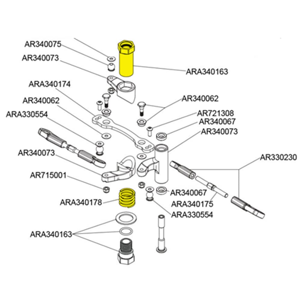 Specifications: Part Number: AR340122(ARA340178) AR340065 & ARA340163 part Name: Servo Saver Hub Set Material:Aluminum alloy 6061 T6 Compatible with : FELONY:#ARA7617V2T1/#ARA7617V2T2 INFRACTION:#ARA7615V2T1/#ARA7615V2T2/#ARA109001 FIRETEAM: KRATION:#ARA106053/#ARA8608V5T1/#ARA8608V5T2/#ARA106040T1/#ARA106040T2/#AR106029/#AR106031/#AR106015/#AR106018 LIMITLESS:#ARA109011 MOJAVE:#ARA7204/#ARA7604V2T1/#ARA7604V2T2/#ARA106058T1/#ARA106058T2 NOTORIOUS:#ARA8611V5T1/#ARA8611V5T2/#ARA106044T1/#ARA106044T2/#AR106034/#AR106036 OUTCAST:#ARA8710/#ARA106060/#ARA106042T1/#ARA106042T2/#AR106032/#AR106033/#AR106021/#AR106027 TALION:#ARA8707/#ARA106048/#AR106030/#AR106014 TYPHON:#ARA8306/#ARA8606V5/#ARA106046/#AR106028/#AR106013 Package List: 1* RC Car Servo Saver Hub Set