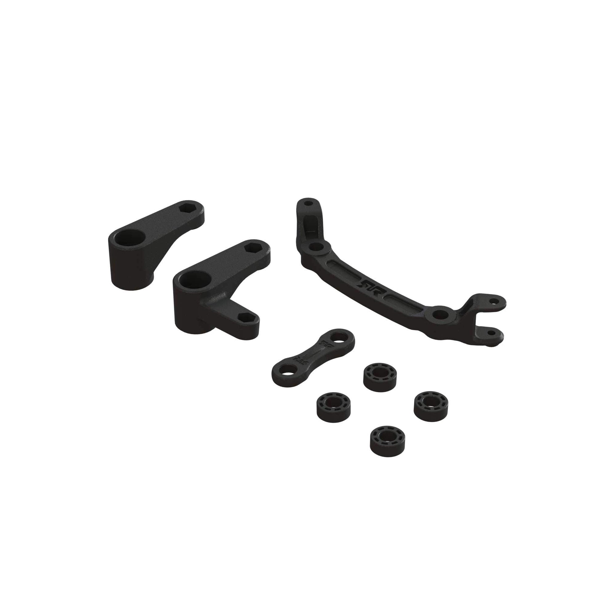 This high-quality Steering Parts Set provides ideal replacement parts for your kit supplied itemsFeatures:Strong composite material for long-lasting durability in all conditions - Precision manufactured for consistent steering operation - Revised design provides increased clearance between the steering parts and the chassis preventing stones from jamming in the steering mechanismIncludes:1 x Servo Link 1 x Ackermann Link 2 x Steering Bell Crank 4 x Bushing