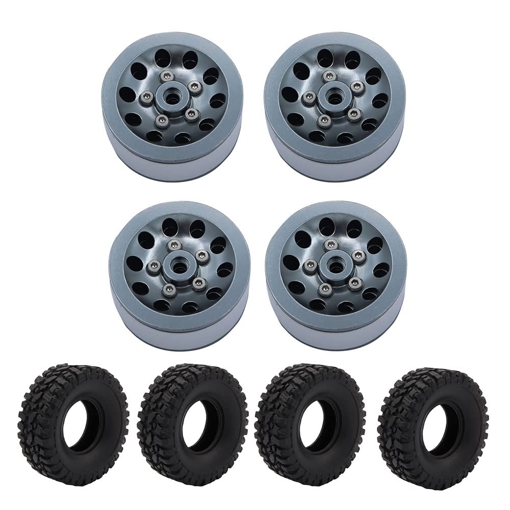 FACCNOY Metal Beadlock Wheel Hub Rims with Tires for 1/16 WPL C14 C24 B14 B24 B16 1/12 MN78 MN99S MND90 RC Car Parts (Titanium)