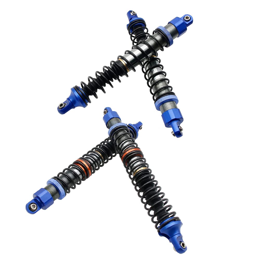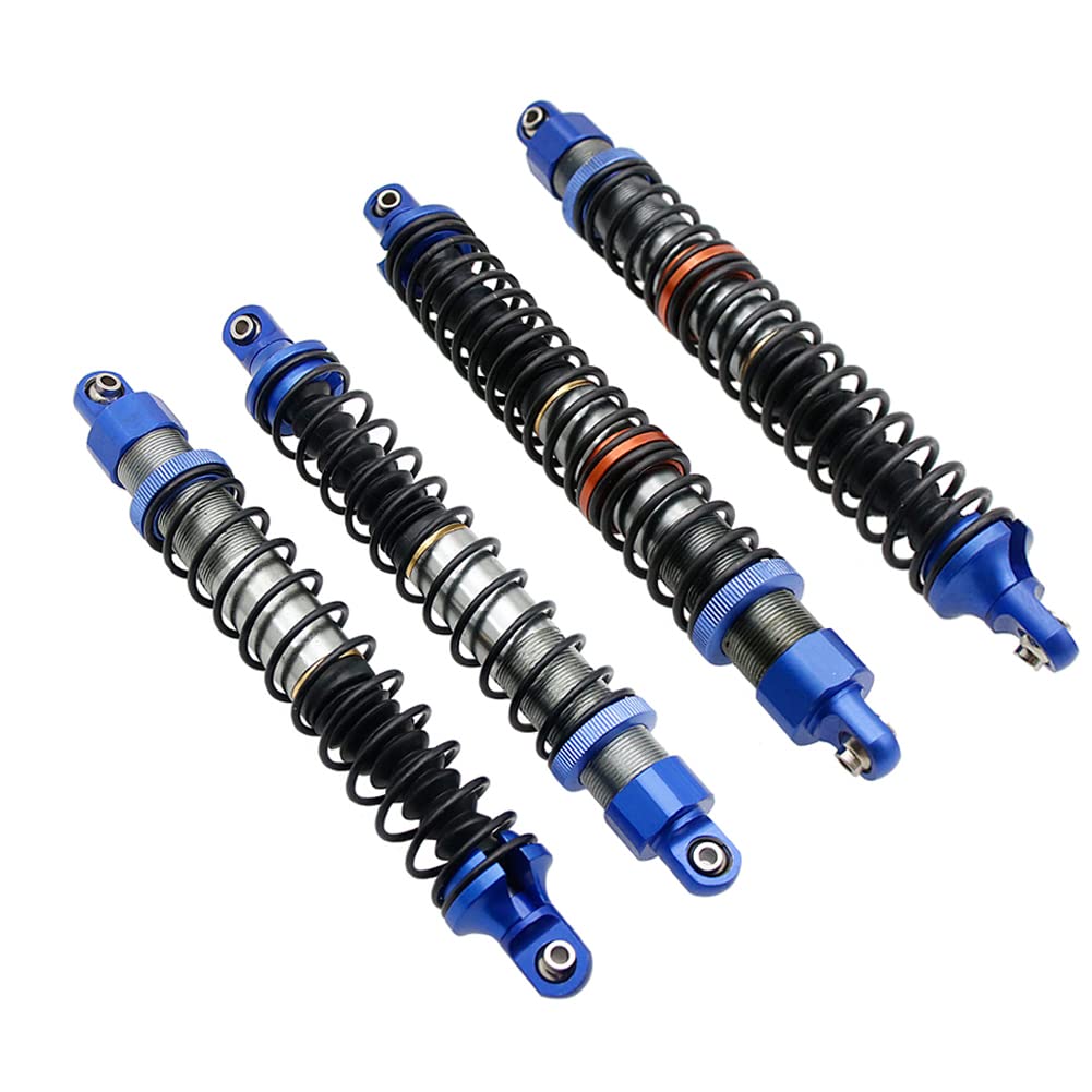 FLMLF Aluminum Front and Rear Oil Shocks Kit Blue Shocks Oil Filled For 1/5 Rc car Hpi Baja 5B SS 5T 5SC RC Car Parts 2pcs front Shock Absorber and 2pcs Rear Shock Absorber.The total length of the front shock absorber is 200mm, and the total length of the rear shock absorber is 220mm.Front shock absorbing mounting hole and hole distance 185mm, rear shock absorbing mounting hole and hole distance 205mm.When the RC car is traveling on uneven road surface, the shock absorber can effectively reduce some of the vehicle 's vibration and bumpy feeling.The bright and refreshing blue color adds a unique charm to the shock absorber. Aluminum alloy material has good strength and toughness, and can also maintain good stability and durability.Suitable for 1/5 ROVAN HPI Baja 5B 5T 5Sc RC Car Parts. We have a professional after-sales team, if you have any questions, please contact us in time, we will solve your problems within 24 hours. Welcome to FLMLF, our purpose is to follow your heart and create a Remote control car of your own with your own hands.