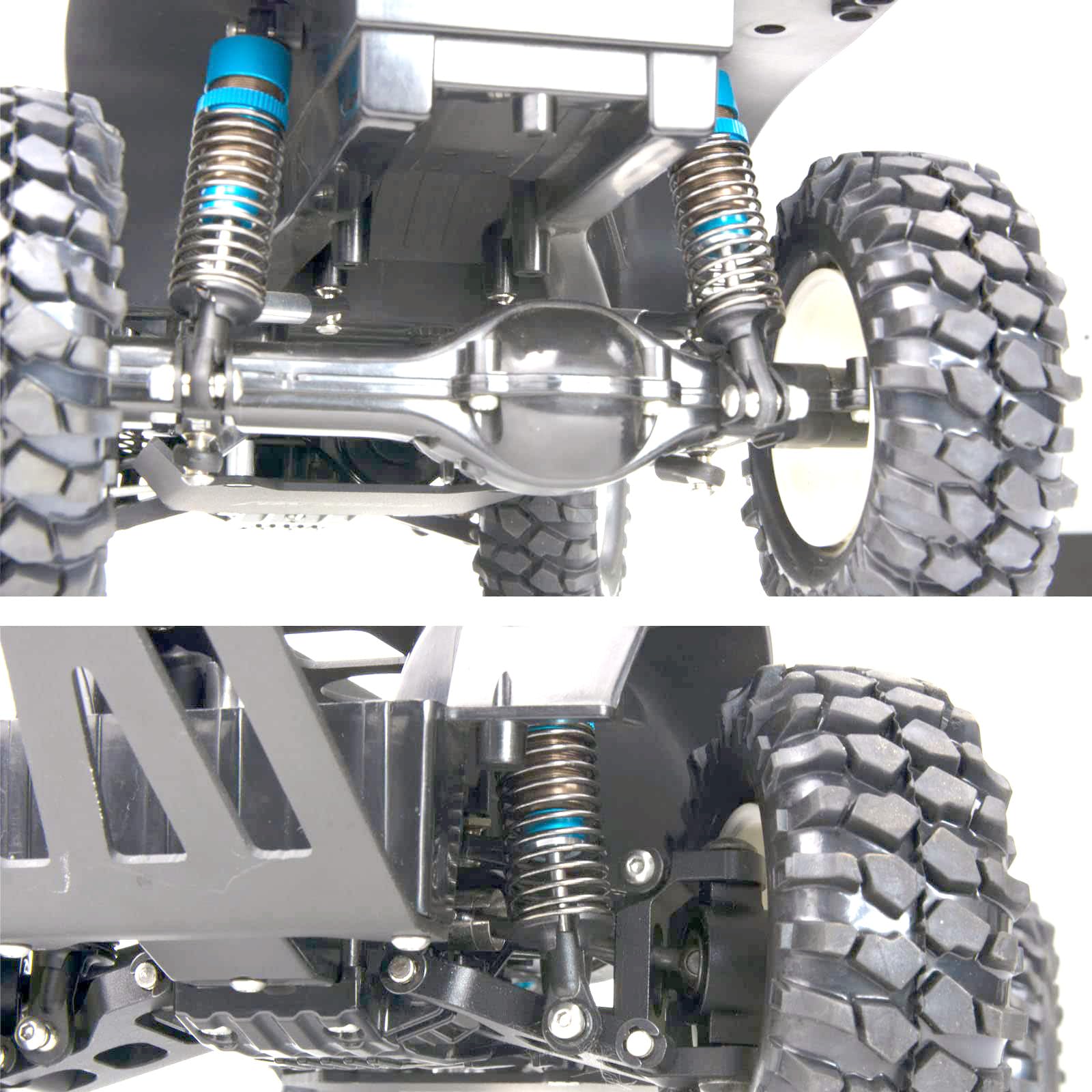 - Q: What benefits do these shocks provide compared to standard RC shocks? A: The upgraded HOBOHY shocks feature CNC machined aluminum shock bodies and come with softer springs for maximum travel compression, providing better damping effects and smoother performance on various terrains.