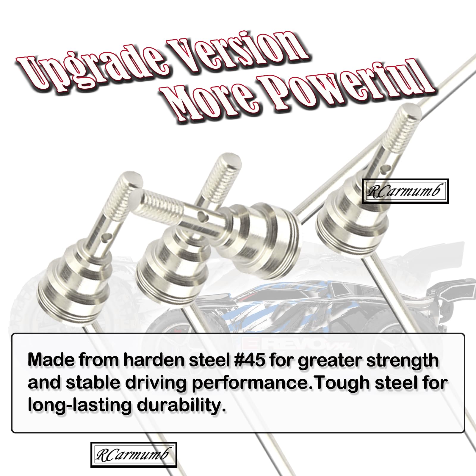 Rcarmumb Drive Shaft CVD Upgrades Part for 1/16 e-revo #7151X, 4pcs Front Rear Harden Steel #45 Upgrades Parts Hop-up,Silver