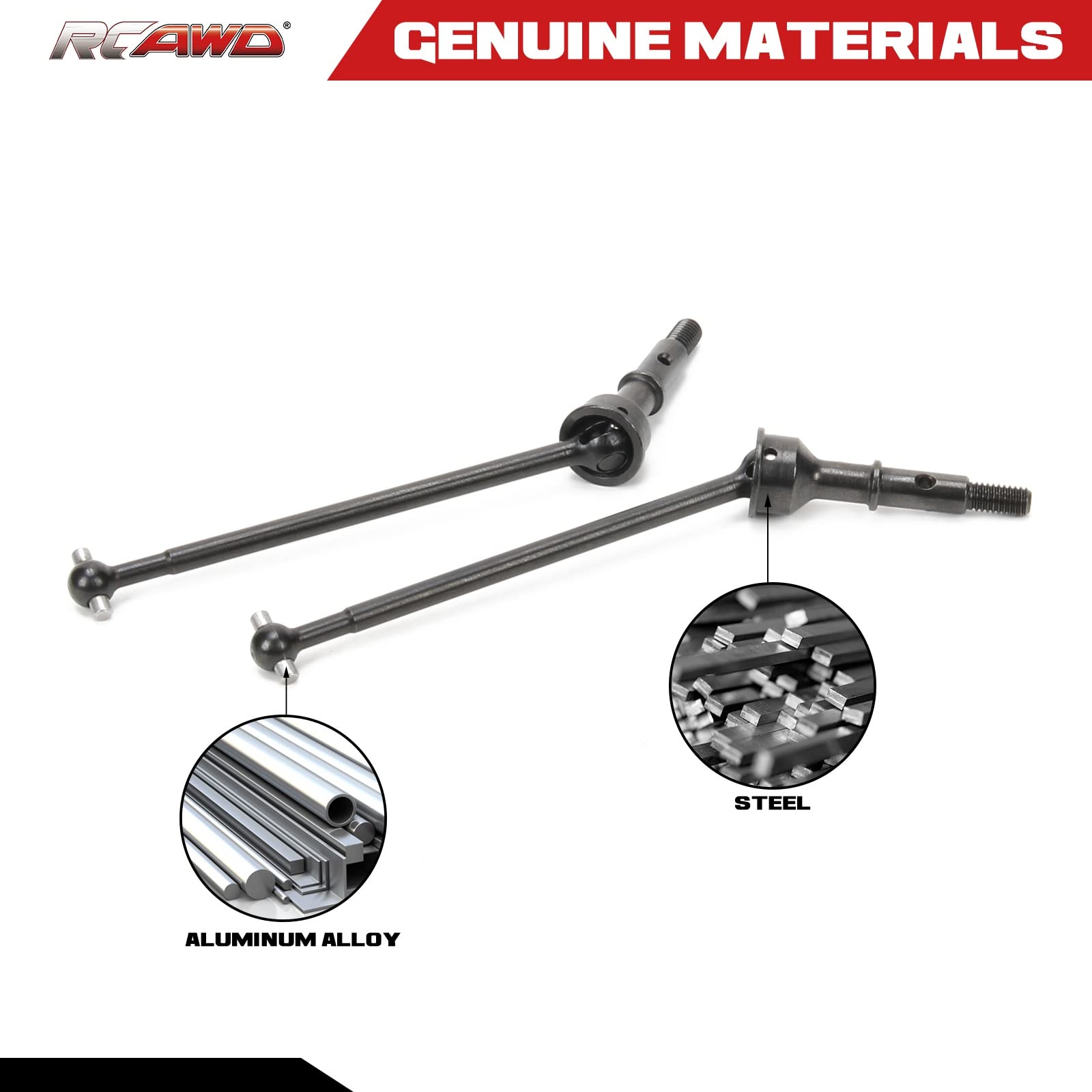 - Q: How durable is the RCAWD CVD Driveshaft Set? A: This driveshaft set is manufactured from #45 steel, making it much stronger and more durable than standard options, ensuring ultra-smooth power transfer for your vehicle.