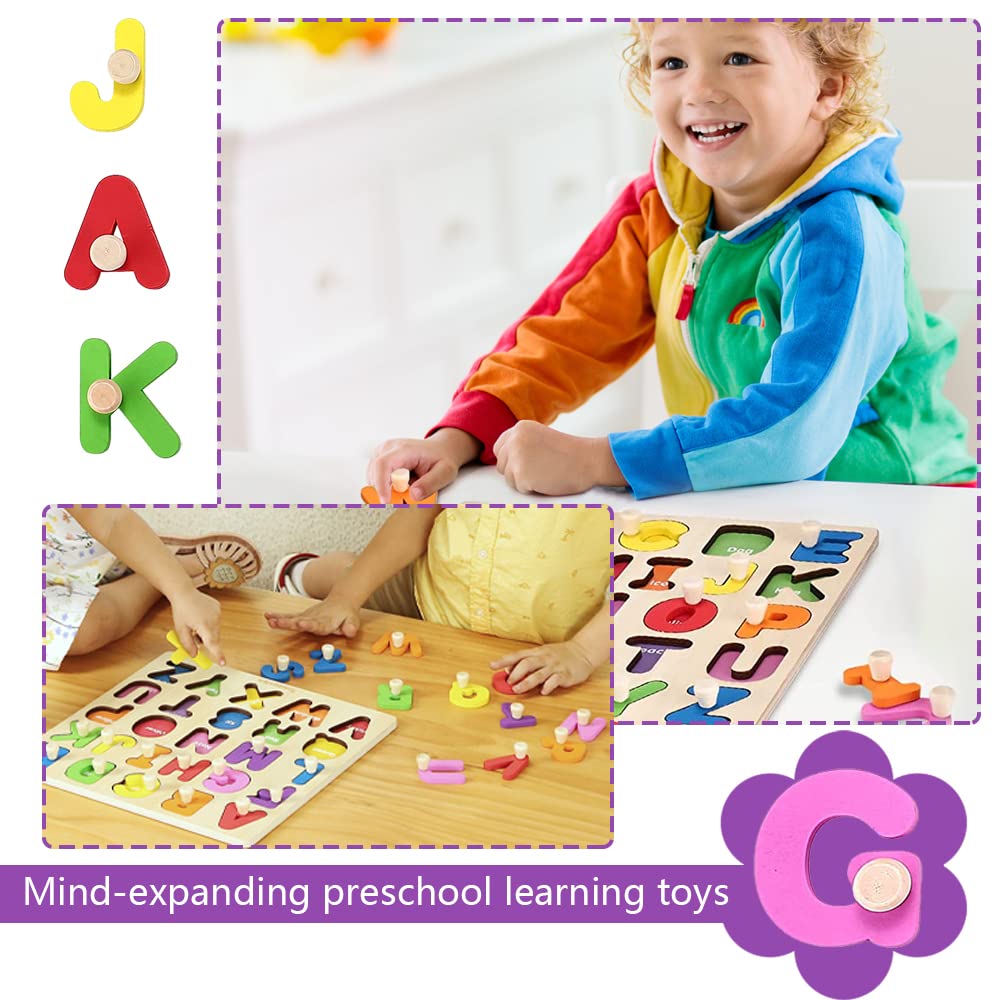 Wooden Puzzles For Toddlers Wooden Alphabet Puzzle Toys With Board Knob Abc Puzzle Shape Alphabet Learning Puzzles Toys Sensory Toys For Toddlers 1 2 3 4 5 Year Old