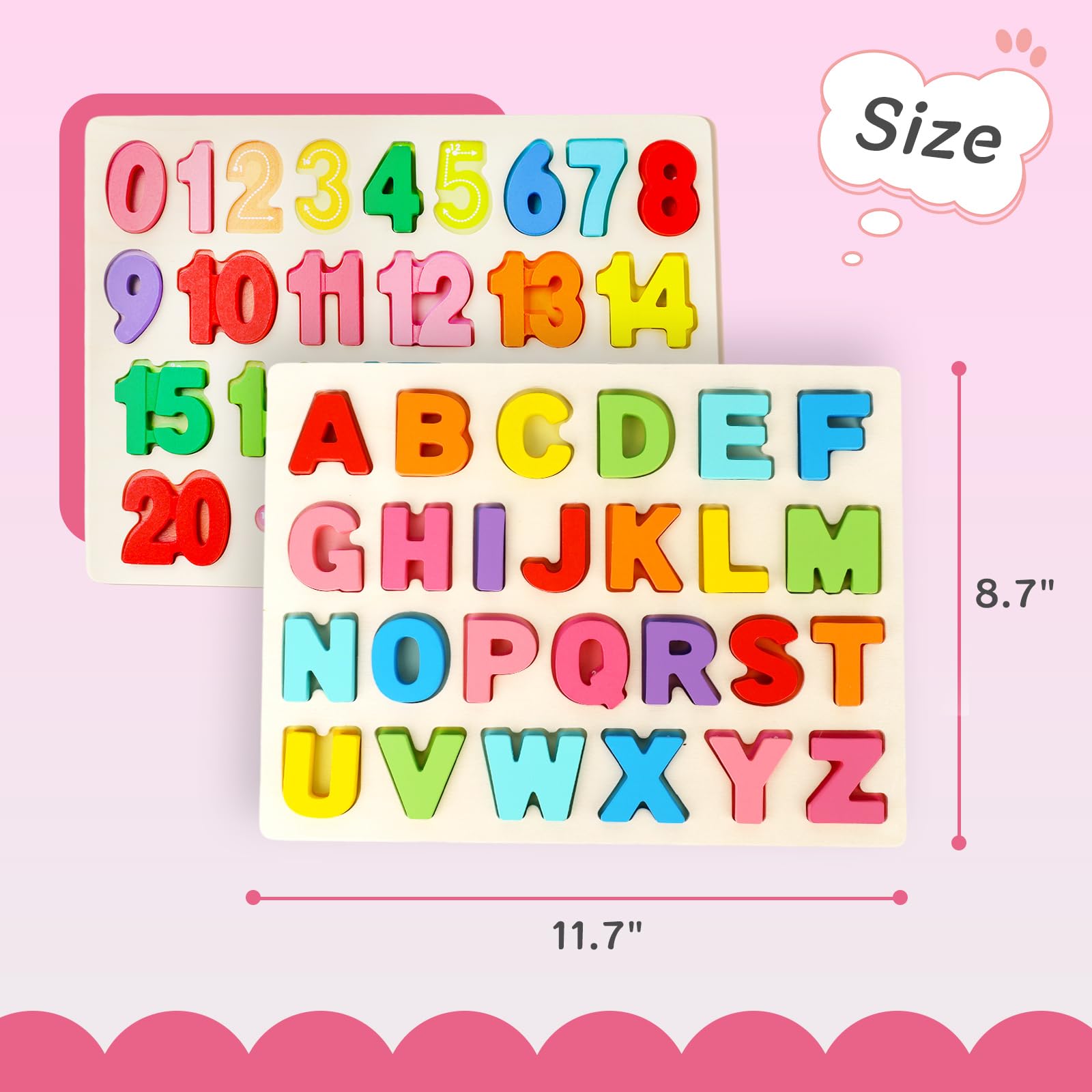 Amor Present Wooden Puzzles For Toddlers, Alphabet And Number Shape Puzzle Board, Preschool Learning Educational Toys For Kids