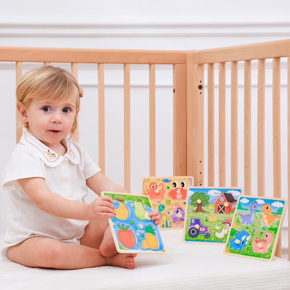 View compareGrinnnie Wooden Toddler Puzzles, 1 2 3 Years Old Learning Montessori Peg Puzzle Toy Set For Toddlers, 4 Pcs Educational Portable Size Travel Knob Puzzle Toys, Gift For 1-3 Boy Girl Birthday Christmas