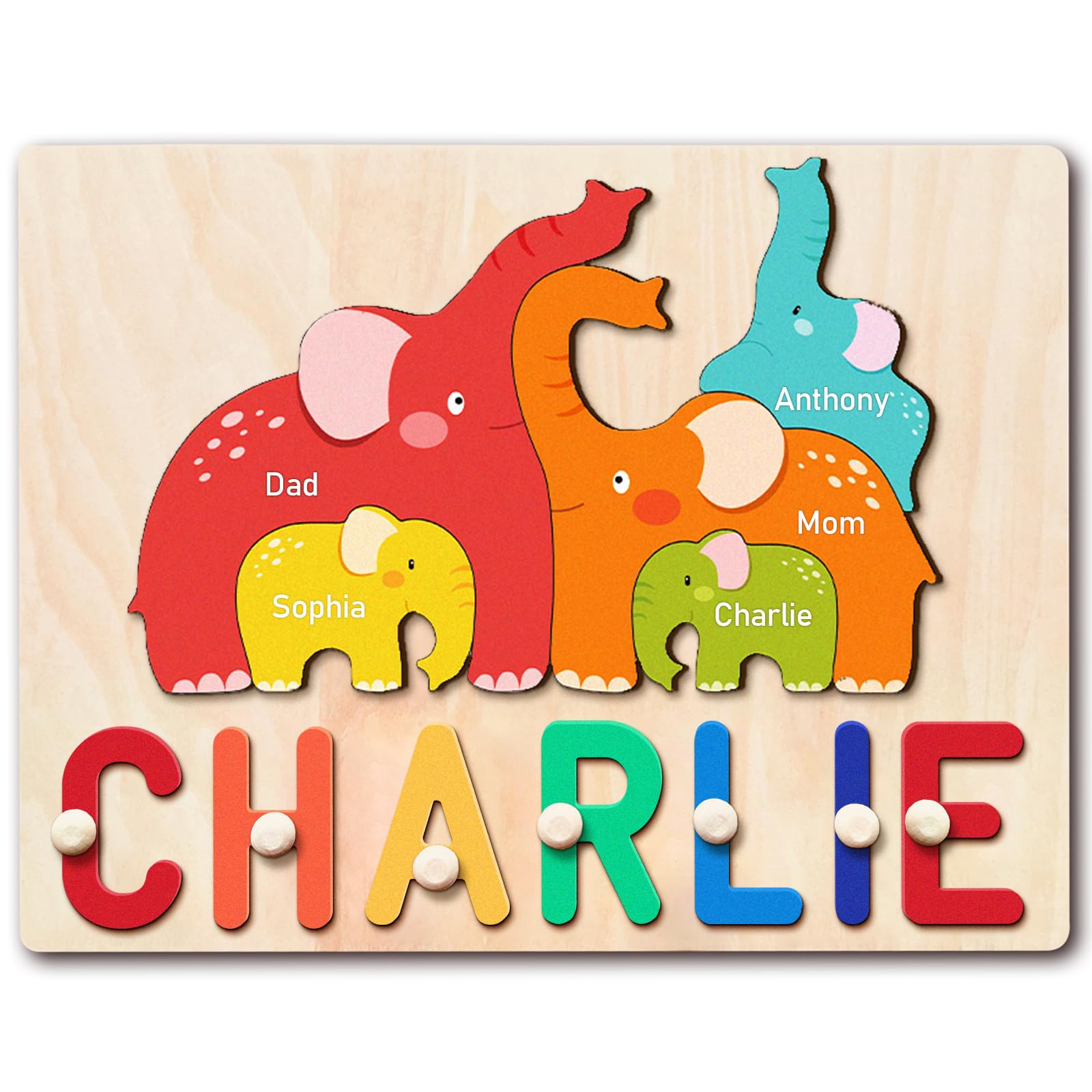 Name Puzzles For Toddlers 1-3, Personalized Name Puzzle With Elephant Family Wooden Puzzle For Toddlers 1-3, First Birthday Gift