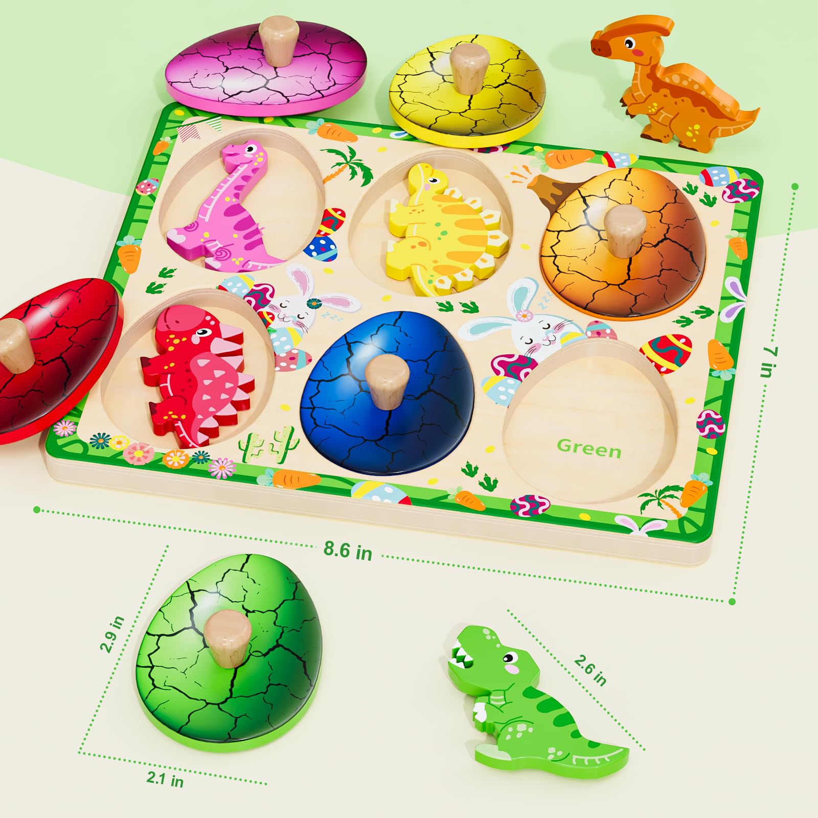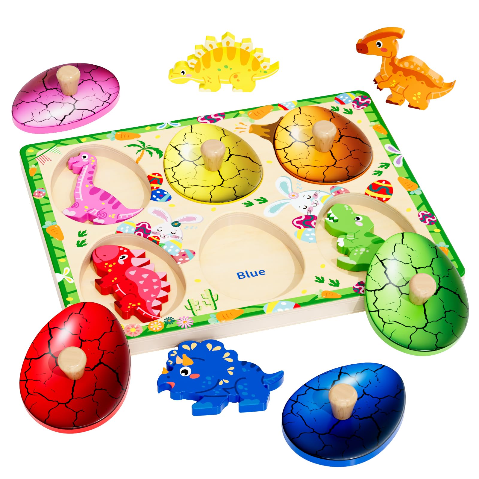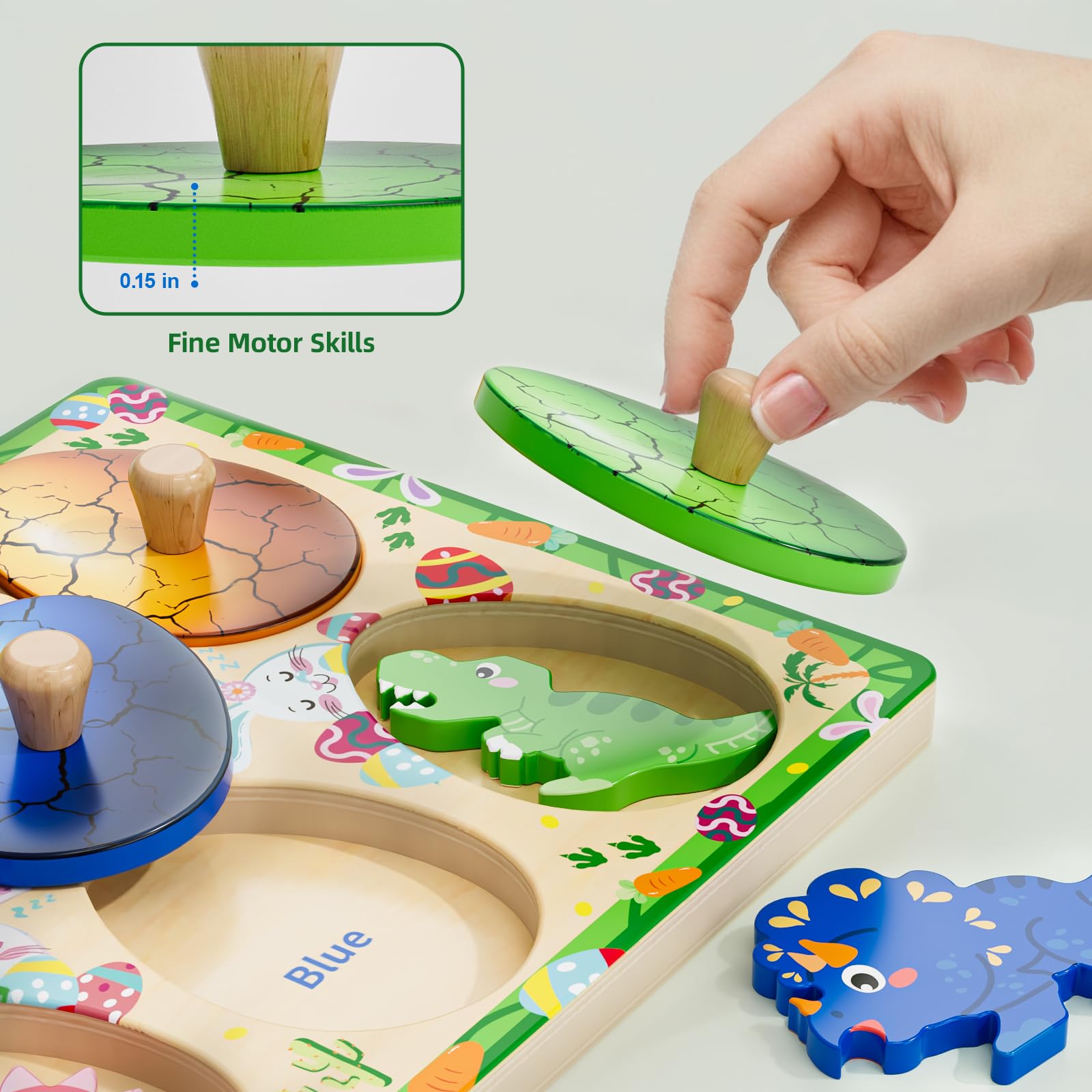 Qodoflr Wooden Puzzles For Toddlers 18+ Months, Dinosaur Egg Shape Puzzle For Boy Girl, Montessori Shapes Sorter Board Puzzle Fo