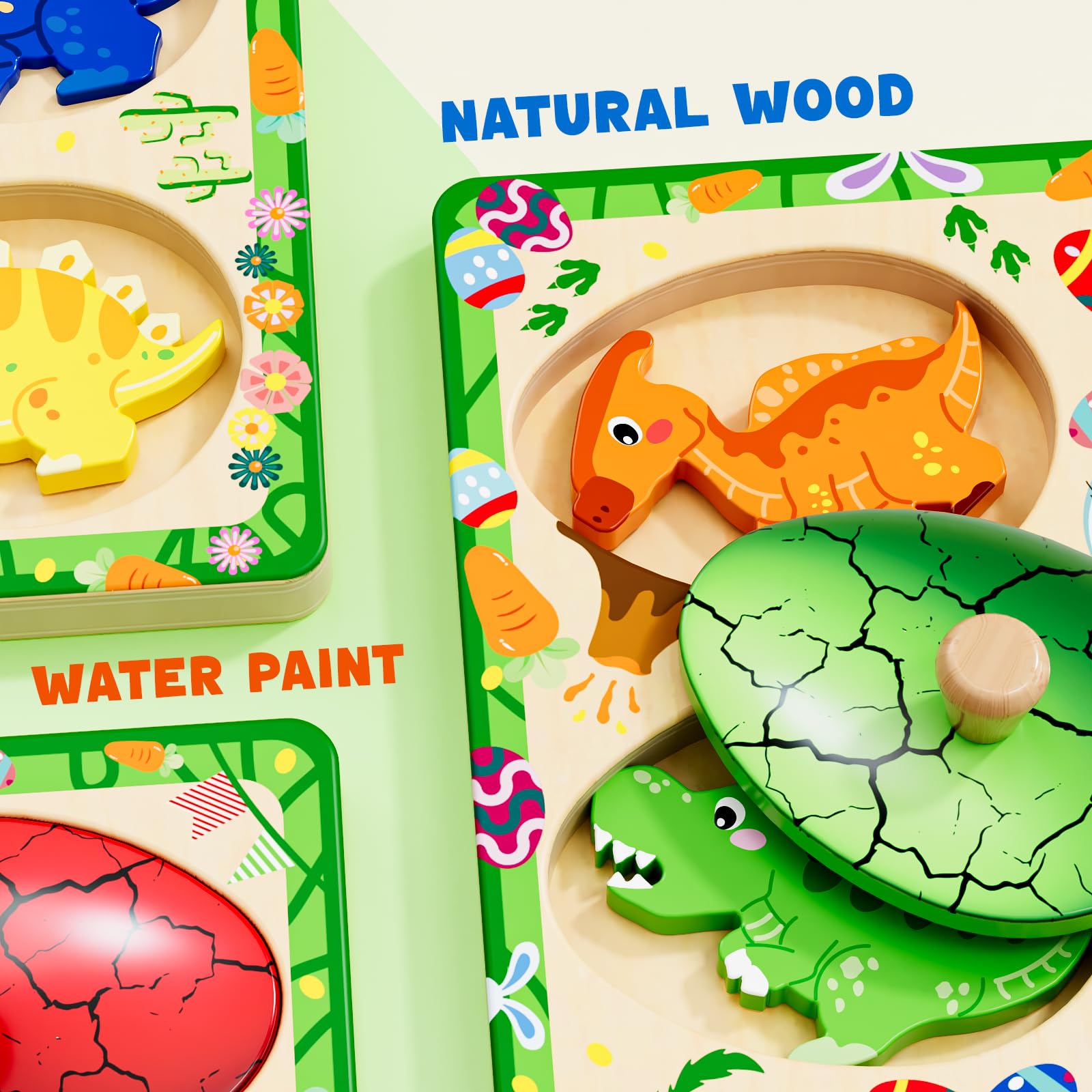 View compareQodoflr Wooden Puzzles For Toddlers 18+ Months, Dinosaur Egg Shape Puzzle For Boy Girl, Montessori Shapes Sorter Board Puzzle Fo