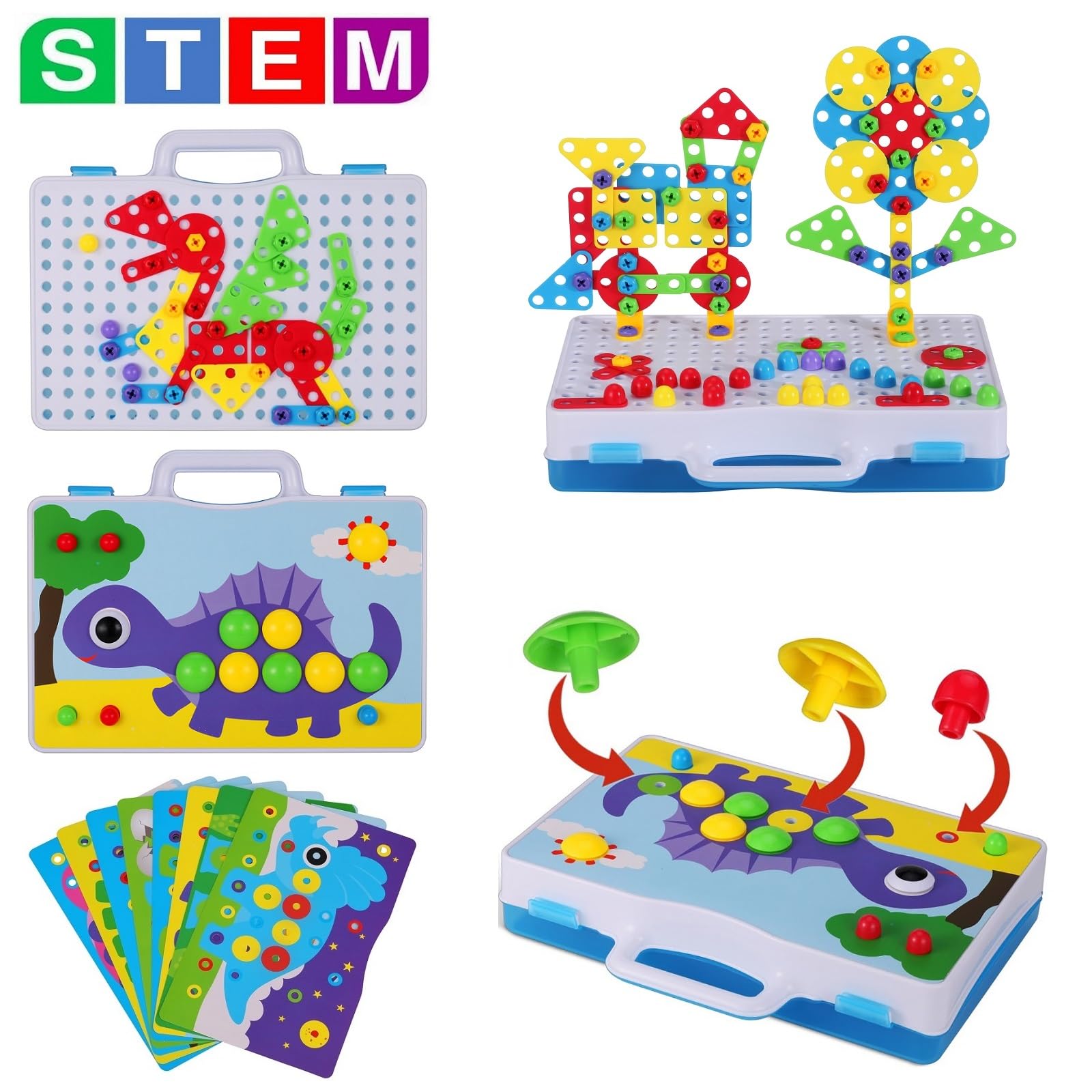 - Perfect Gift & Safe Play: The SUPSTEM mosaic puzzle set is certified non-toxic, ensuring safe play for children. It comes with a portable storage box, making it easy to transport and store, perfect for travel or home use.