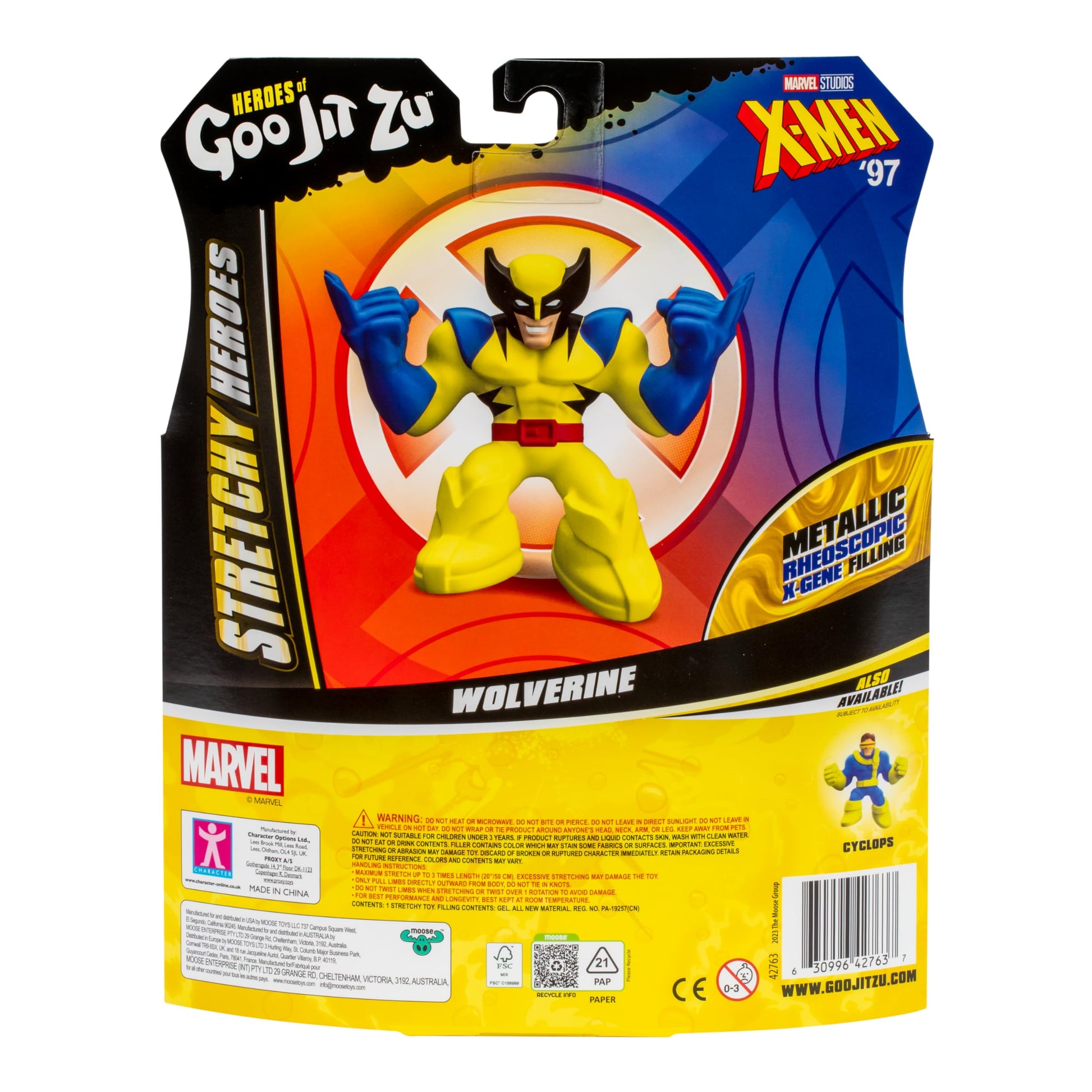 Marvel Studios X-Men '97 and the Heroes of Goo Jit Zu have combined forces again to bring you the ultimate line-up of the stretchiest, gooiest and squishiest MARVEL X-Men action figures ever! Wolverine has joined forces with the Heroes of Goo Jit Zu to become a Super Stretchy Hero! This Goo Jit Zu MARVEL X-Men '97 Hero can stretch, twist and squish his unique Metallic Rheoscopic X-Gene filling and move in a way like he never has before! With his extra, super gooey filling you can squeeze his body and watch his Metallic filling swirl around! Boys can play with their Wolverine Hero figure in a new GOOEY way and help save the day - with NO mess! Squeeze, squish and stretch his arms, legs and body! His amazing gooey body can stretch up to 3 times its size and then return to its original shape and size! Collect both 4.5'' MARVEL X-Men Hero Packs including Cyclops. Discover a new way to play and save the day with these cool collectible MARVEL X-Men '97 Heroes of Goo Jit Zu!