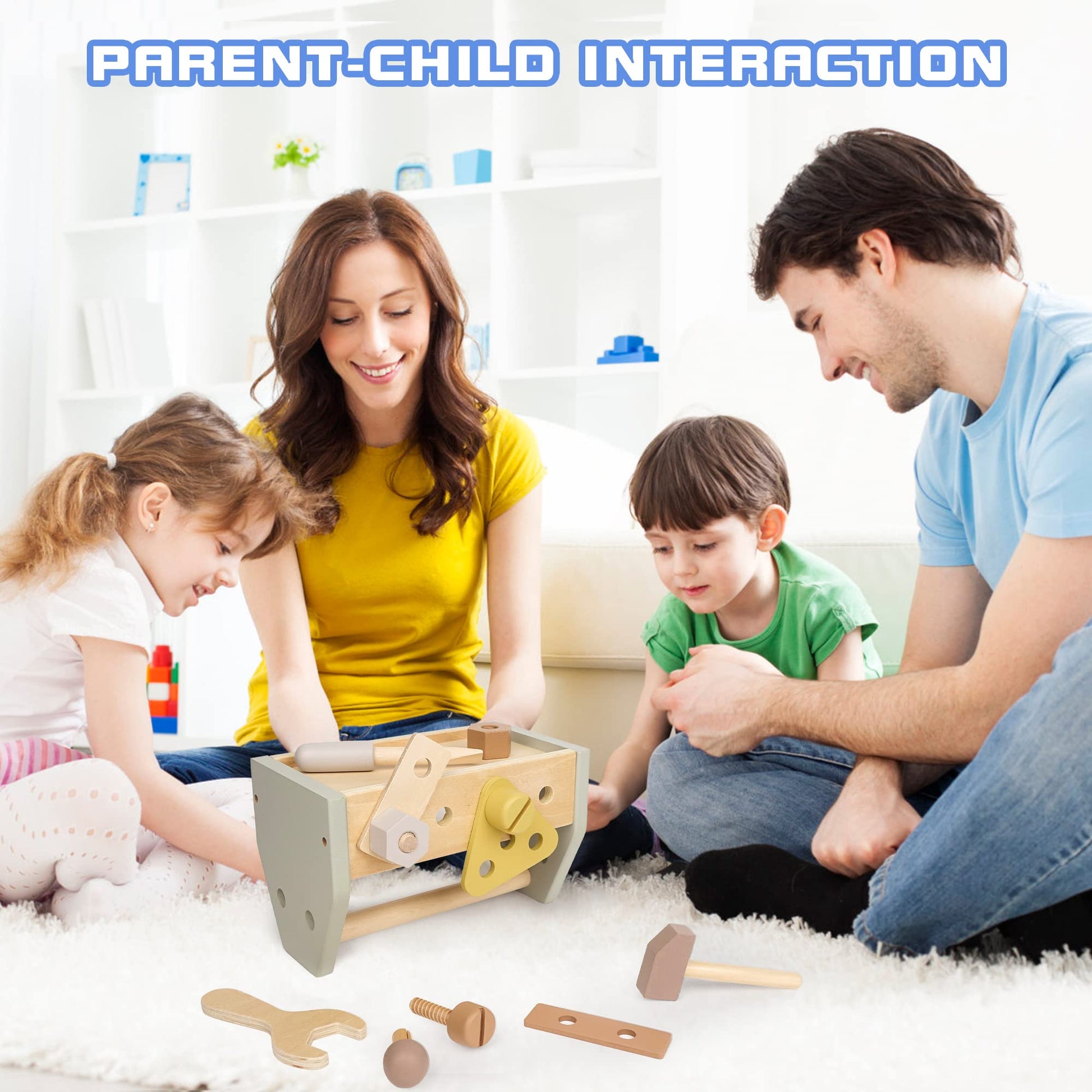 LEADER JOY Montessori Wooden Tools Kit Toddler Educational Construction Kids Toys Sets Play Box Preschool Play Tool Wooden Const