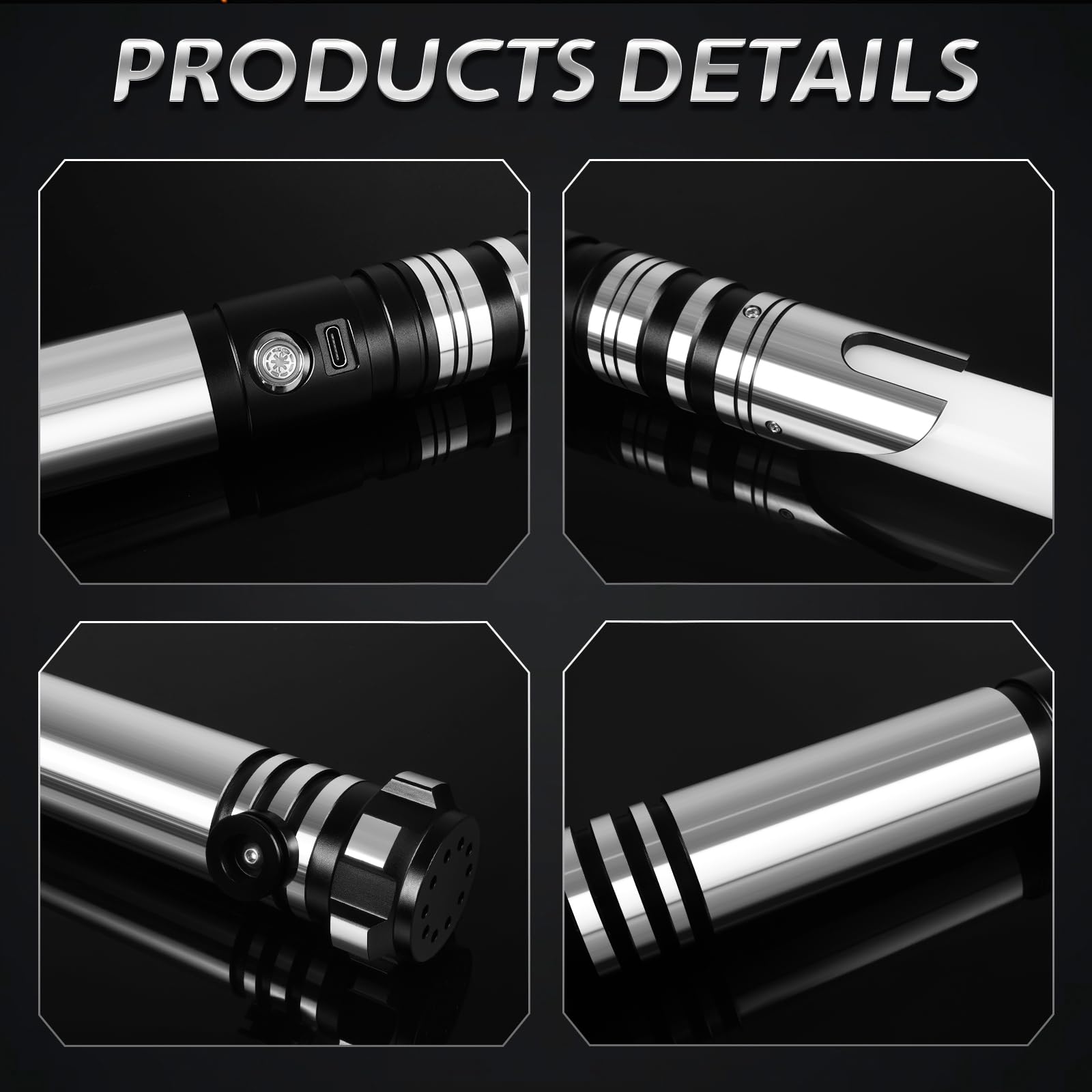 • Q: What materials are used in the construction of this lightsaber? A: The lightsaber features a durable aluminum hilt for a comfortable grip and a sturdy PC blade that resists bending and impacts, making it suitable for heavy-duty play and realistic dueling scenarios.