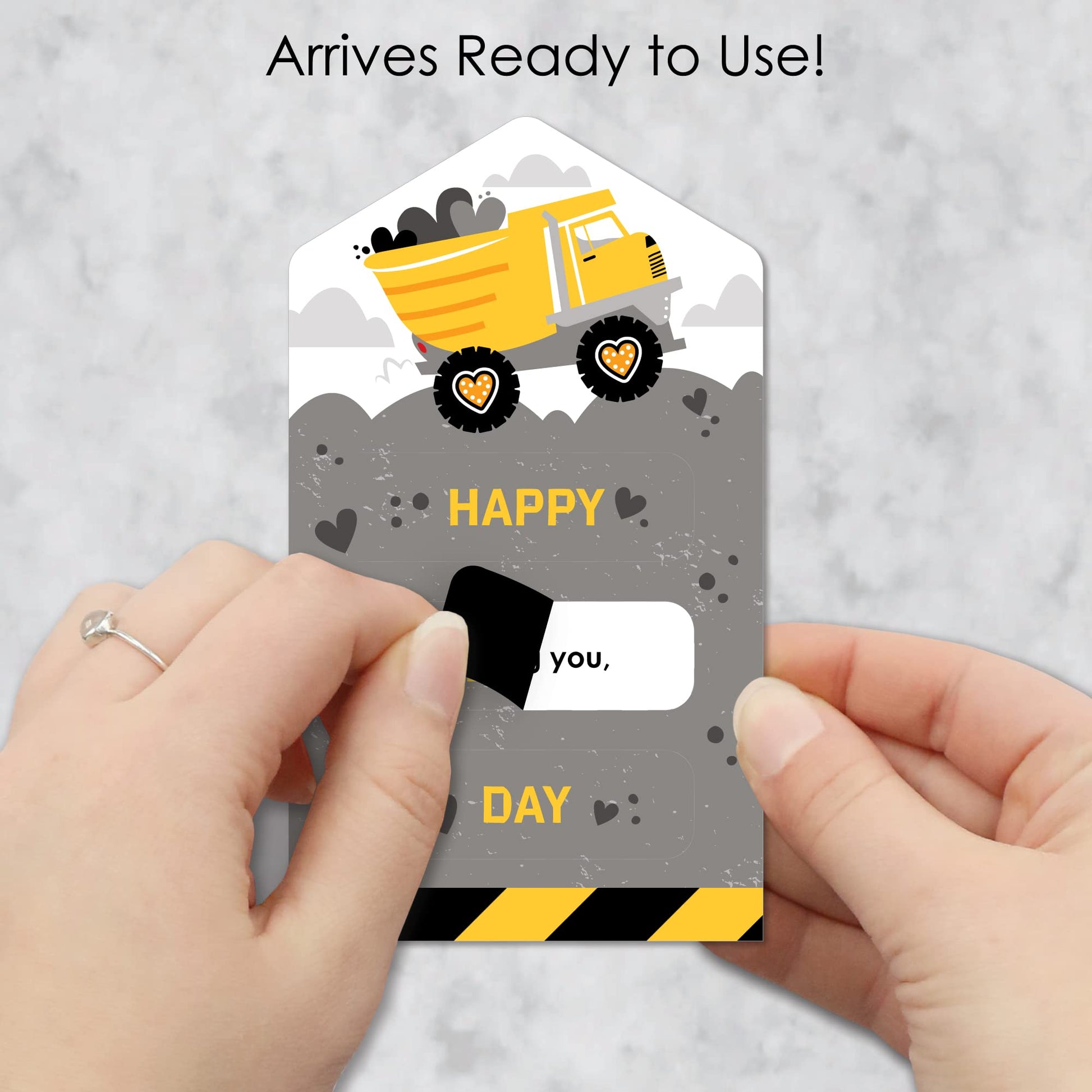 Big Dot Of Happiness Dig It - Construction Party Zone - Dump Truck Cards For Kids - Happy Valentines Day Pull Tabs - Set Of 12