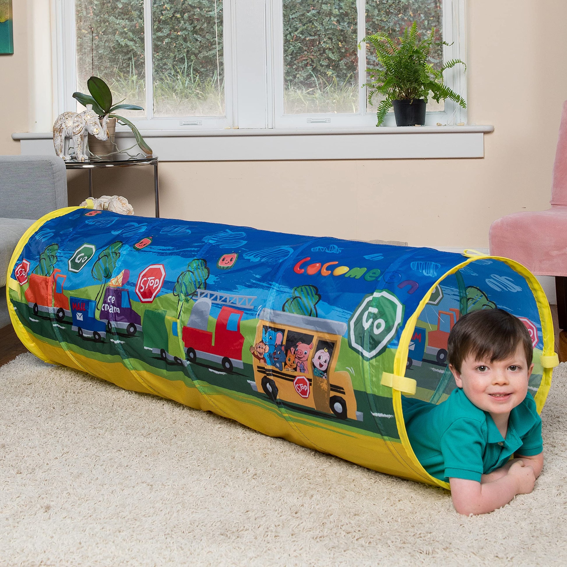 - Q: What activities can my child do with the CoComelon Tunnel? A: Kids can engage in a variety of imaginative play activities such as hide and seek, freeze tag, and peek-a-boo. The tunnel also promotes active play and helps strengthen motor skills as children crawl and explore.