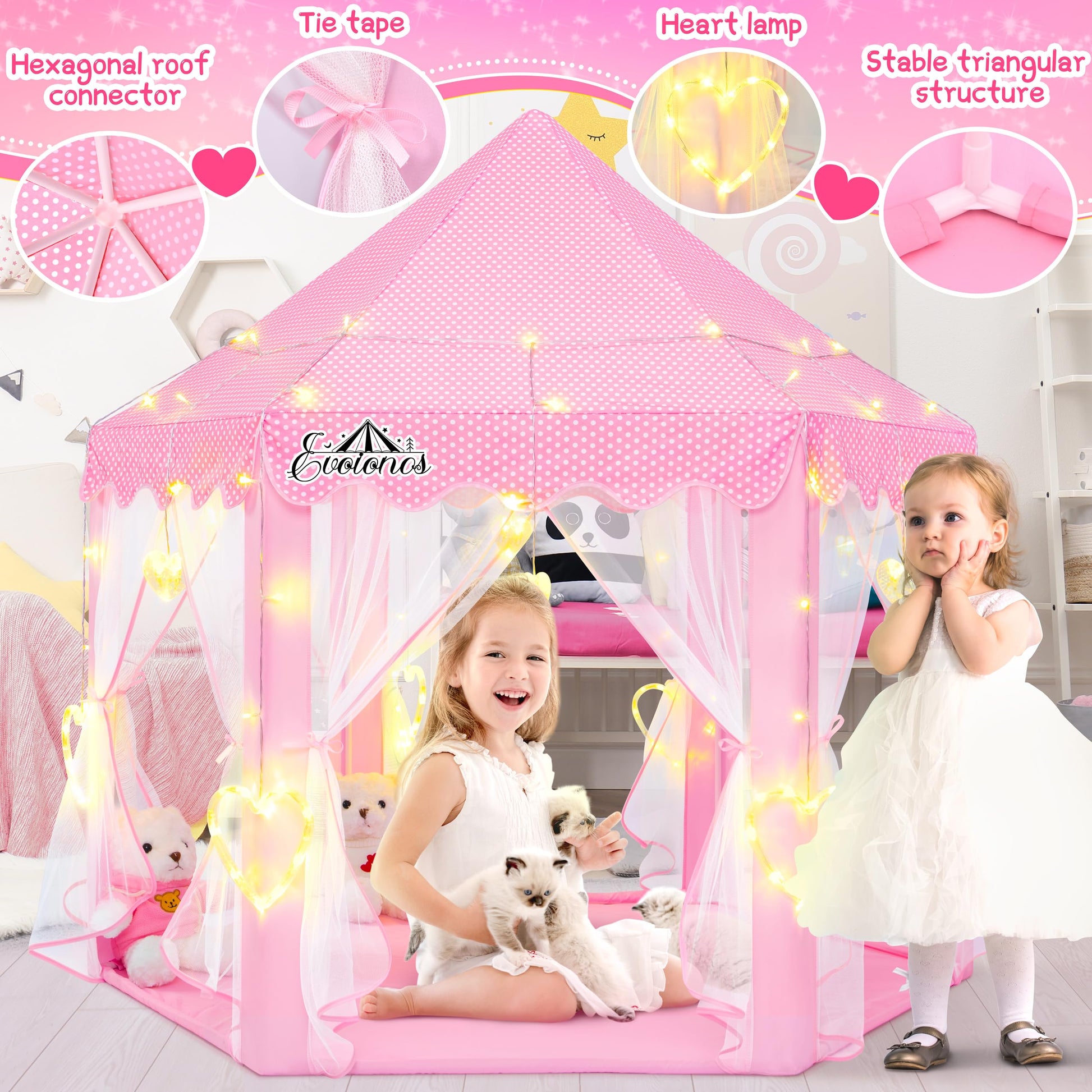 View compareEvoionos Princess Tent For Girls, Kids Tent Indoor, Girls Tent With Large Love Lights, Pink Play Tent For Toddlers, Princess Cas