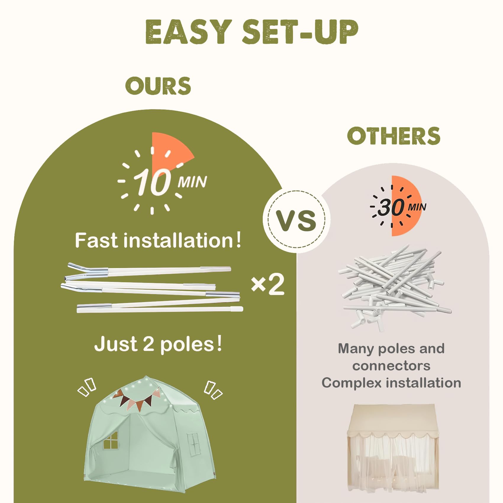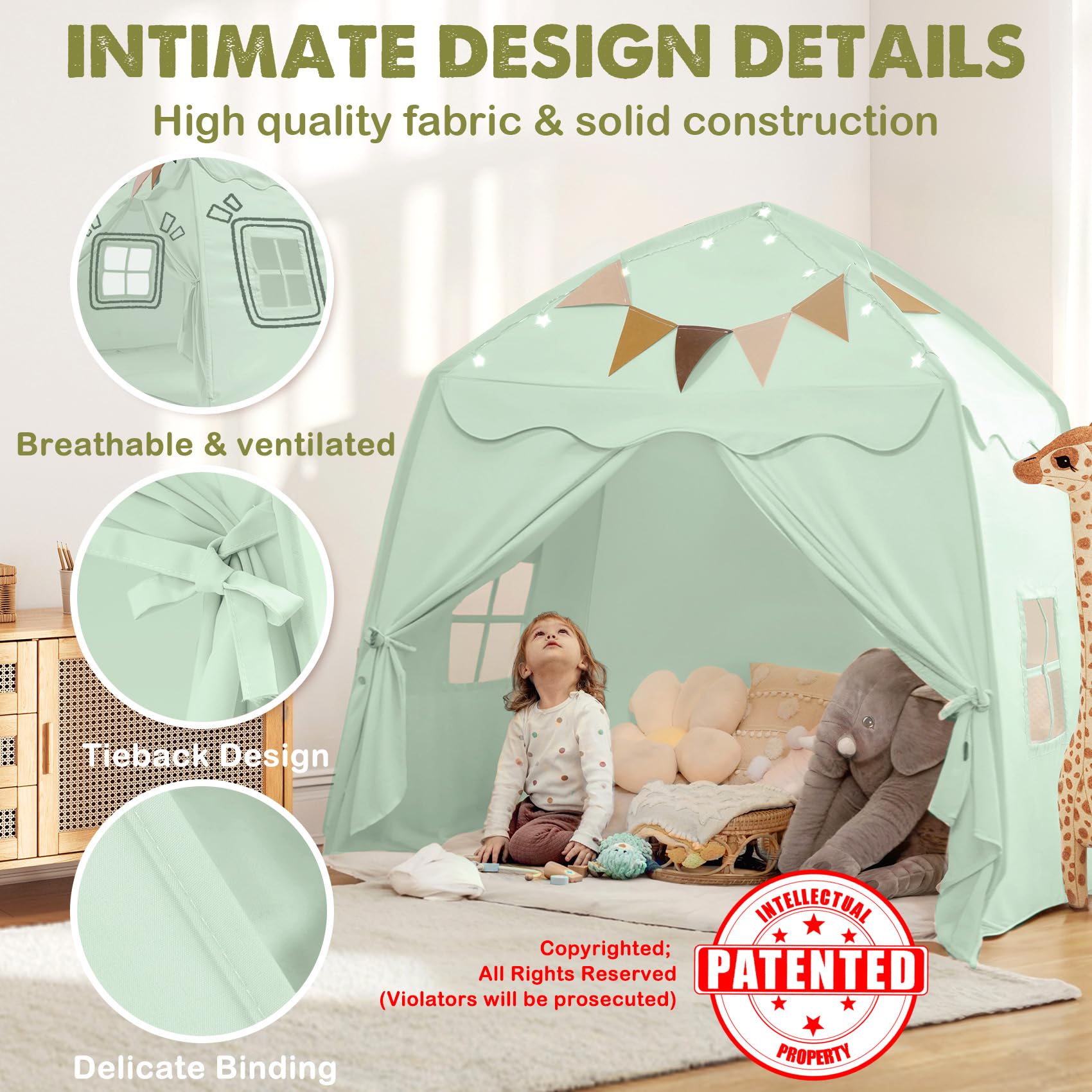 Extra Large Toddler Bed Tent & Kids Play Tent Bed Tent with Flags & Star Lights, Portable & Foldable Teepee, Bed Canopy for Boys & Girls, Indoor Outdoor Dome Tent Playhouse, 59x39x59 in,Green