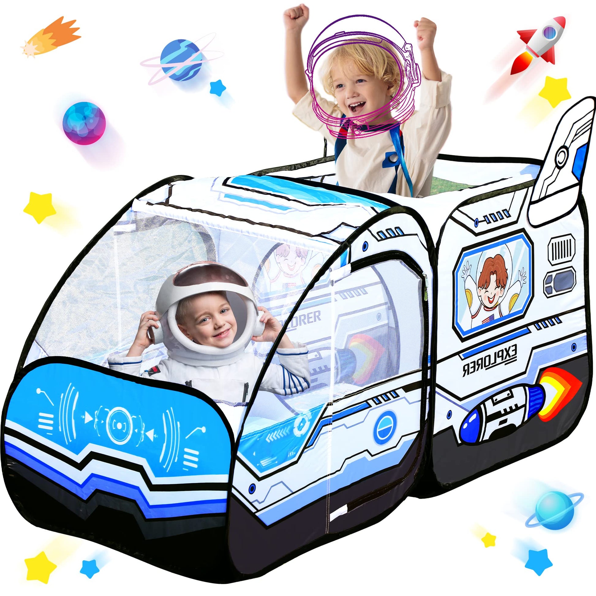 View compareKids Pop Up Play Tent - Spaceship Indoor Outdoor Rocket Ship Playhouse Tent Games Party Children Foldable Tent Birthday Toy For