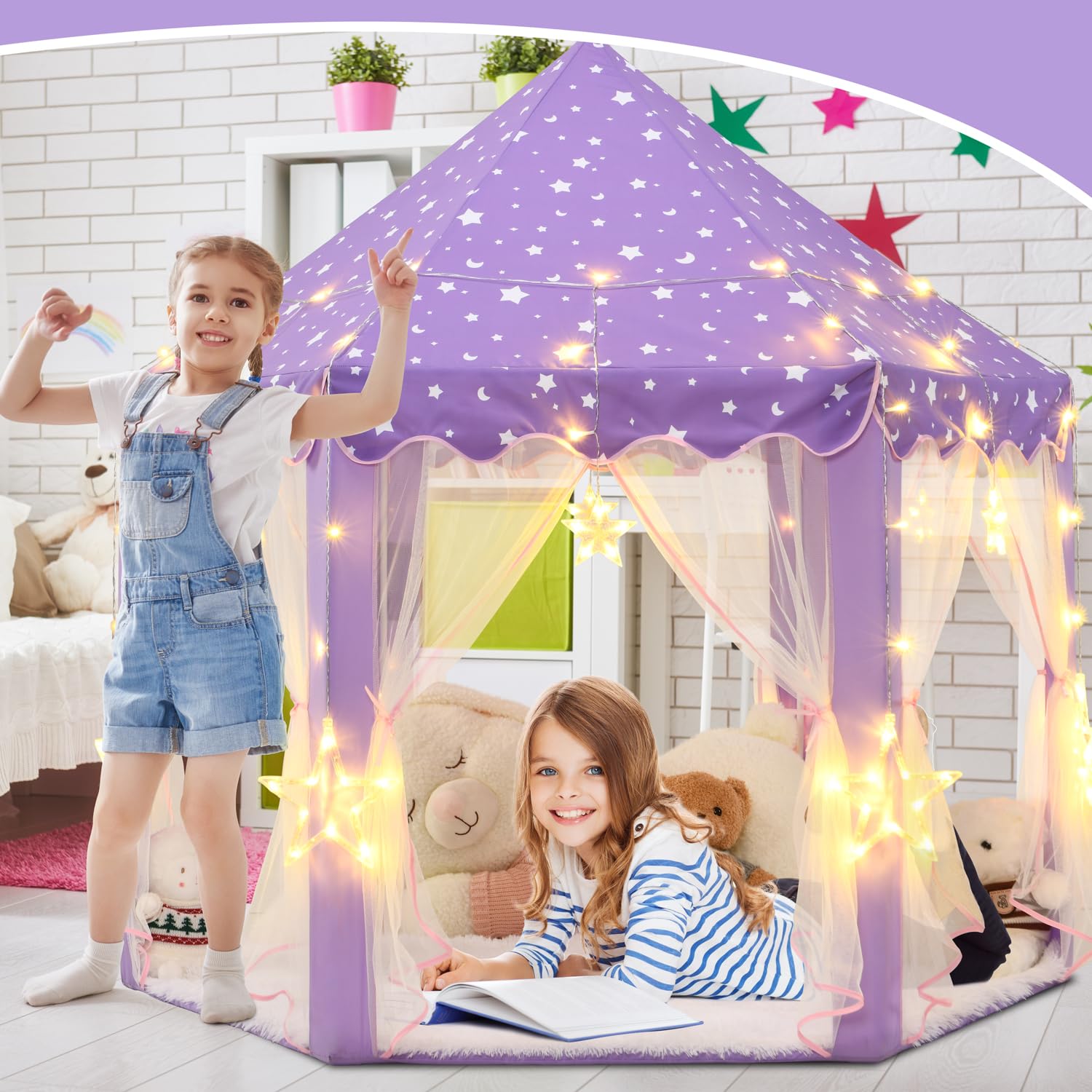 Kixinwa Purple Princess Tent For Girls, Kids Play Tent With Led Large Star Lights, Castle Playhouse Tent For Children Toddlers I