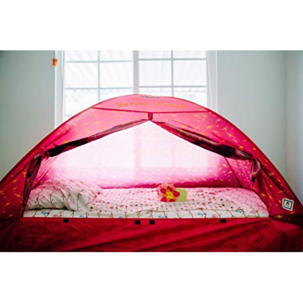 Product Descriptionat Pacific Play Tents, We Are Dedicated To Creating The Highest Quality; Most Creative Play Environments Available. Each Item Is Painstakingly Tested To Insure Long Lasting Playtime Fun And Safe, Creative Structures Designed To Last. Our Devotion To This Is Consistently Validated Through More Awards As Best Play Value And Toy Of The Year . We Have Amassed Countless Letters From Happy Parents Who Have Shared The Various Stories Of There Children Finally Sleeping In Their Own Beds (Due To Our Bed Tent Creations) Or Having Hours Of Fun Pretending To Be On A Creative Journey To The Land Of Imagination.We Constantly Strive To Make Better, More Imaginatively Designed Products For You And Your Children To Enjoy. This Dedication Combined With Our Unparalleled Customer Service And Focus On Quality Has Elevated Us To Be Recognized As The Best Of The Best .From The Manufacturersecret Castle Full Size Bed Tent, This Easy To Assemble Bed Tent Comes Complete With Lightweight Frame Made Of Our Exclusive ''G3'' Patented Shock Corded Poles, Which Support The Colorful Polyester Taffeta Shell.