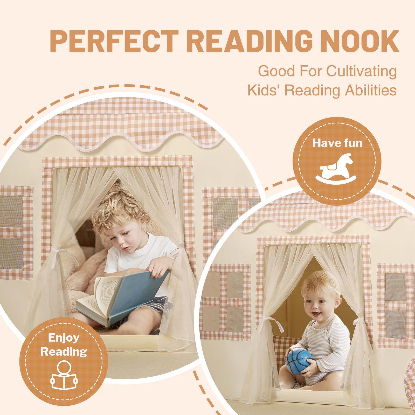 Senodeer Kids Play Tent Indoor: With Brown Checkered, Mat, Rainbow Tissue Garland, Star Lights - Toddler Girl Tent Indoor Playho