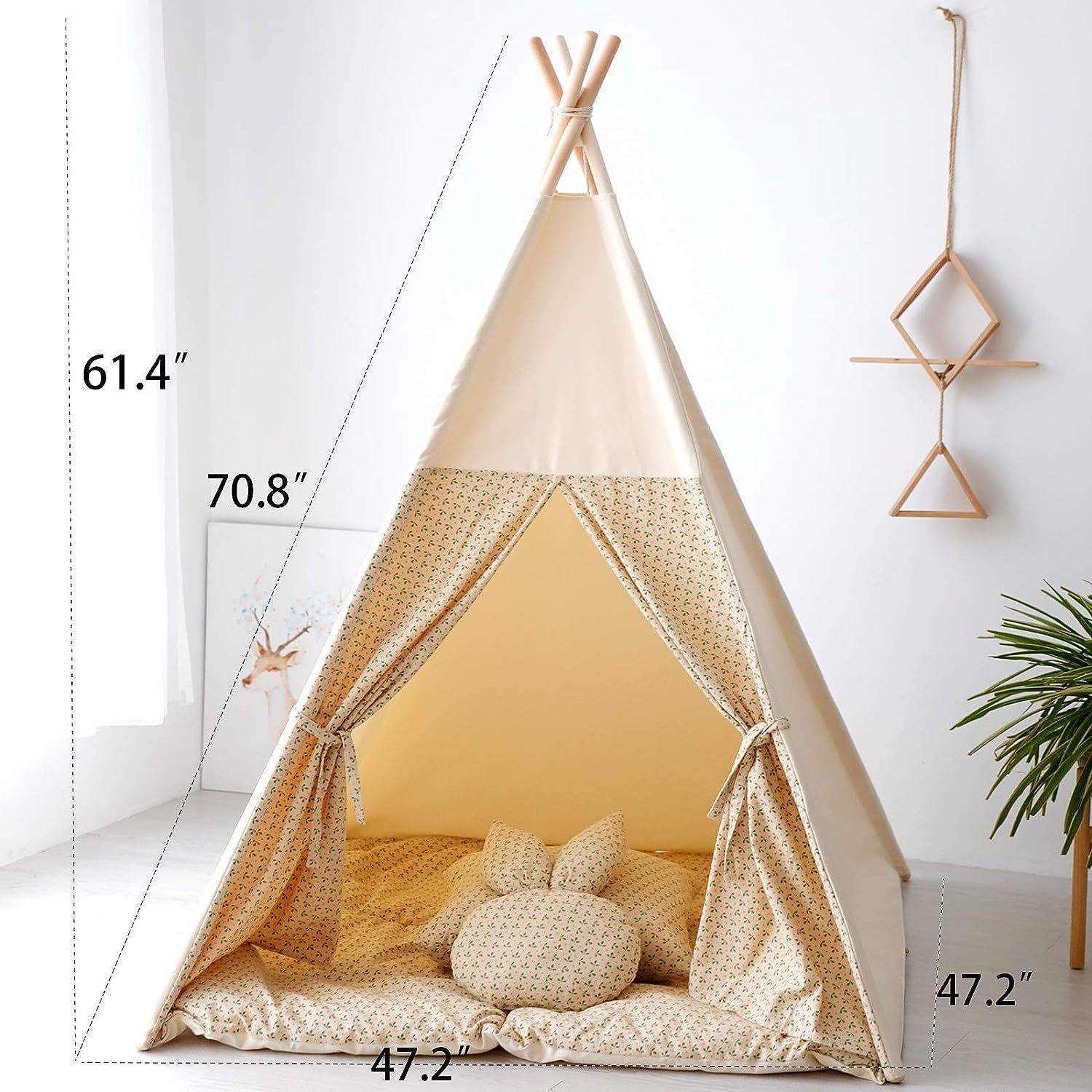 TreeBud Teepee Tent for Kids,Foldable Play Tents for Girl and Boy with Carrybag,Canvas Tipi Kid Playhouse for Tent Indoor Outdoo