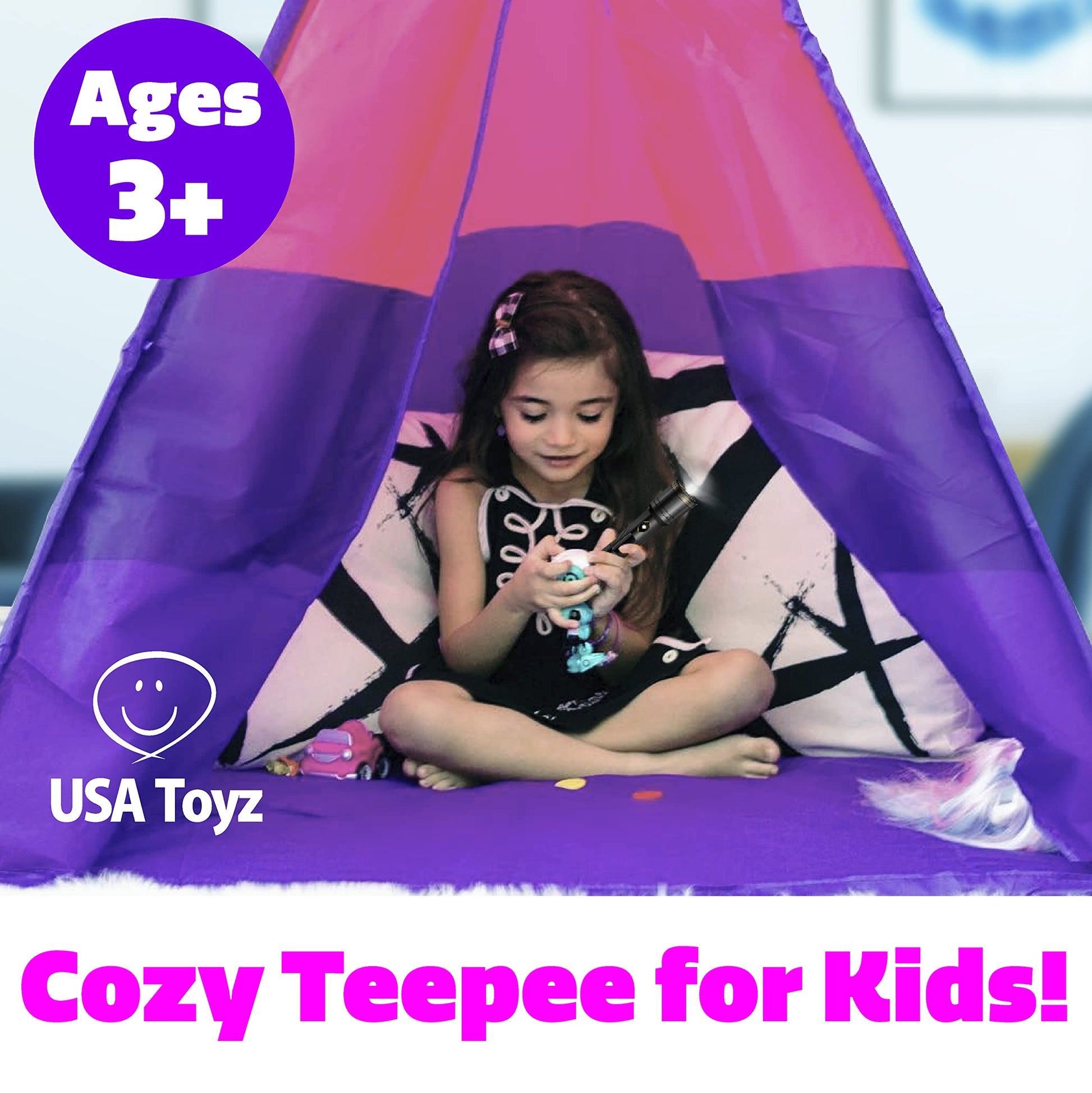 View compareUsa Toyz Happy Hut Teepee Tent For Kids - Indoor Pop Up Teepee Kids Playhouse Tents For Boys, Girls, Toddlers With Portable Storage Bag (Pink)