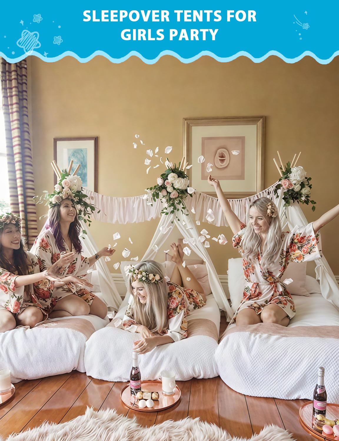 Play Tent with Mat, Star Lights, Cloth Flags Kids Playhouse for Girls & Boys
