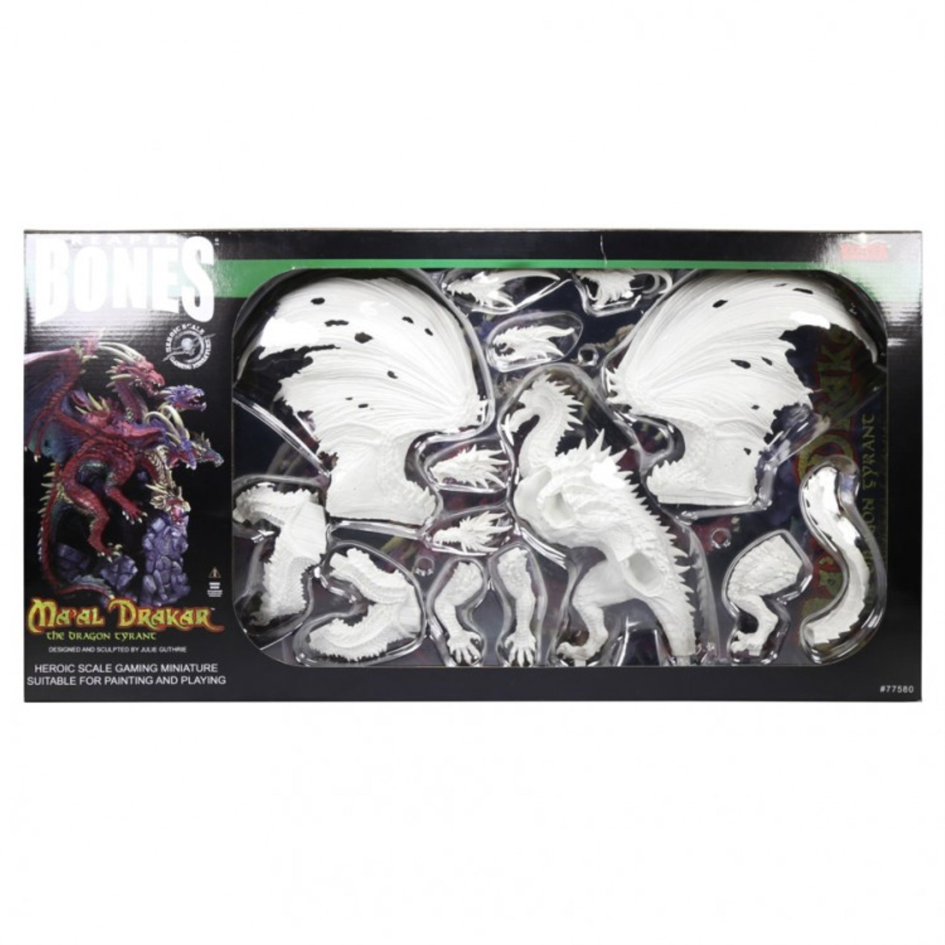 - Q: What scale is the Ma'al Drakar the Dragon Tyrant miniature? A: The Ma'al Drakar the Dragon Tyrant miniature is a 25mm Heroic Scale model, designed to fit well within fantasy tabletop gaming settings.