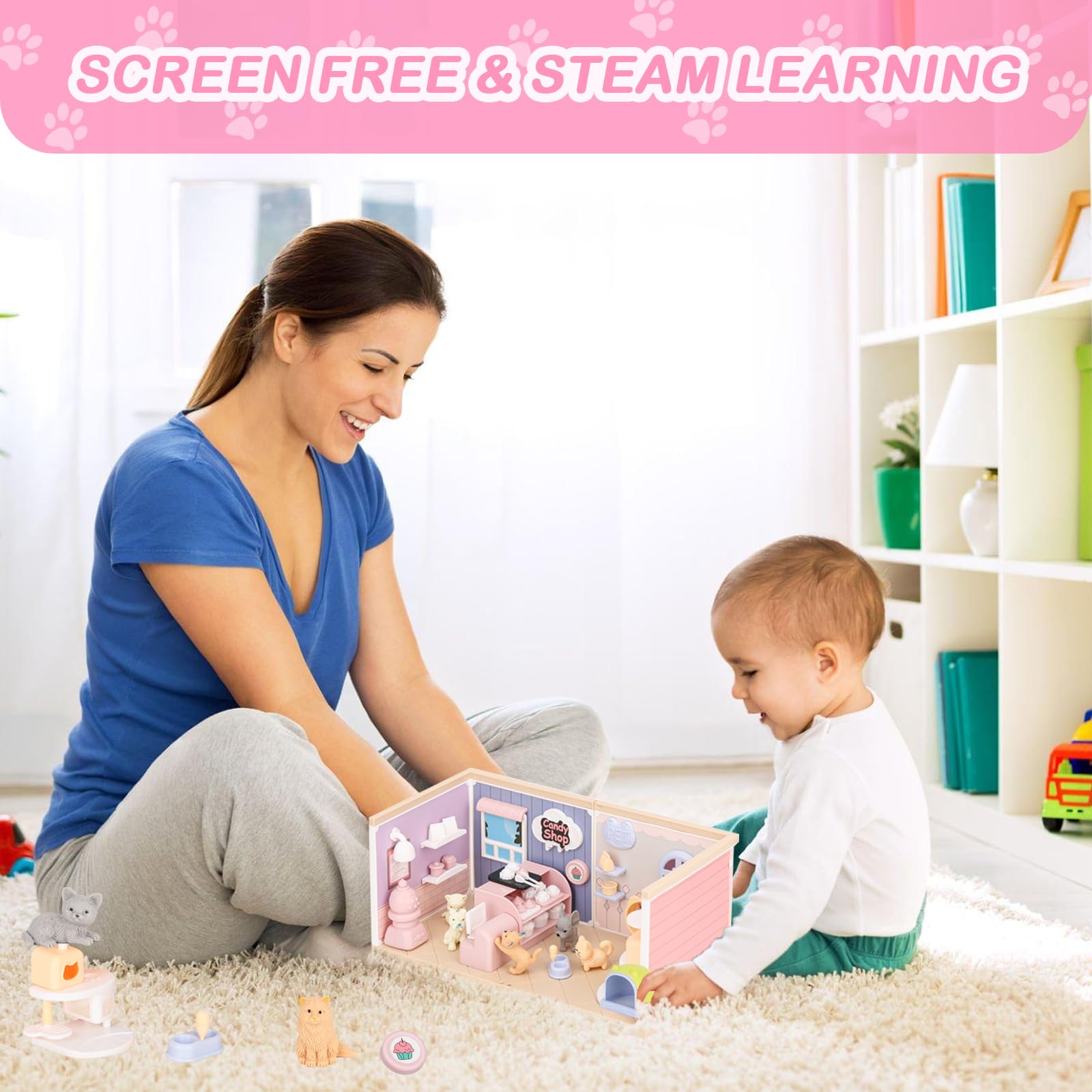 Every little boy and girl has a dream of having a pet to accompany them in their childhood. A kitten or puppy is the best choice for them. We introducing the all-new Pet Buddy! a new and fun pet toy to play with your kiddos. 7 cat and dog figures for kids to choose. Building their own pet house with their hands, DIY what they want. Our pet role-play toys are perfect for encouraging creativity, DIY skills, hand-eye coordination and motor skills between children. The pet dollhouse provides endless hours of fun and entertainment, whether theyre playing with their best friend or imaginative solo play. Our toys are made from safe and durable materials, ensuring they can stand up to all the adventures and excitement kids bring. So what are you waiting for? Get your Pet toys for kids today and enjoy endless fun and laughter with your little friends!
