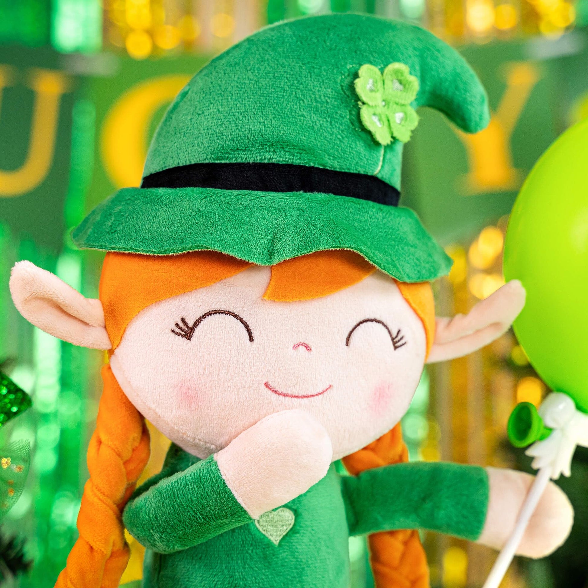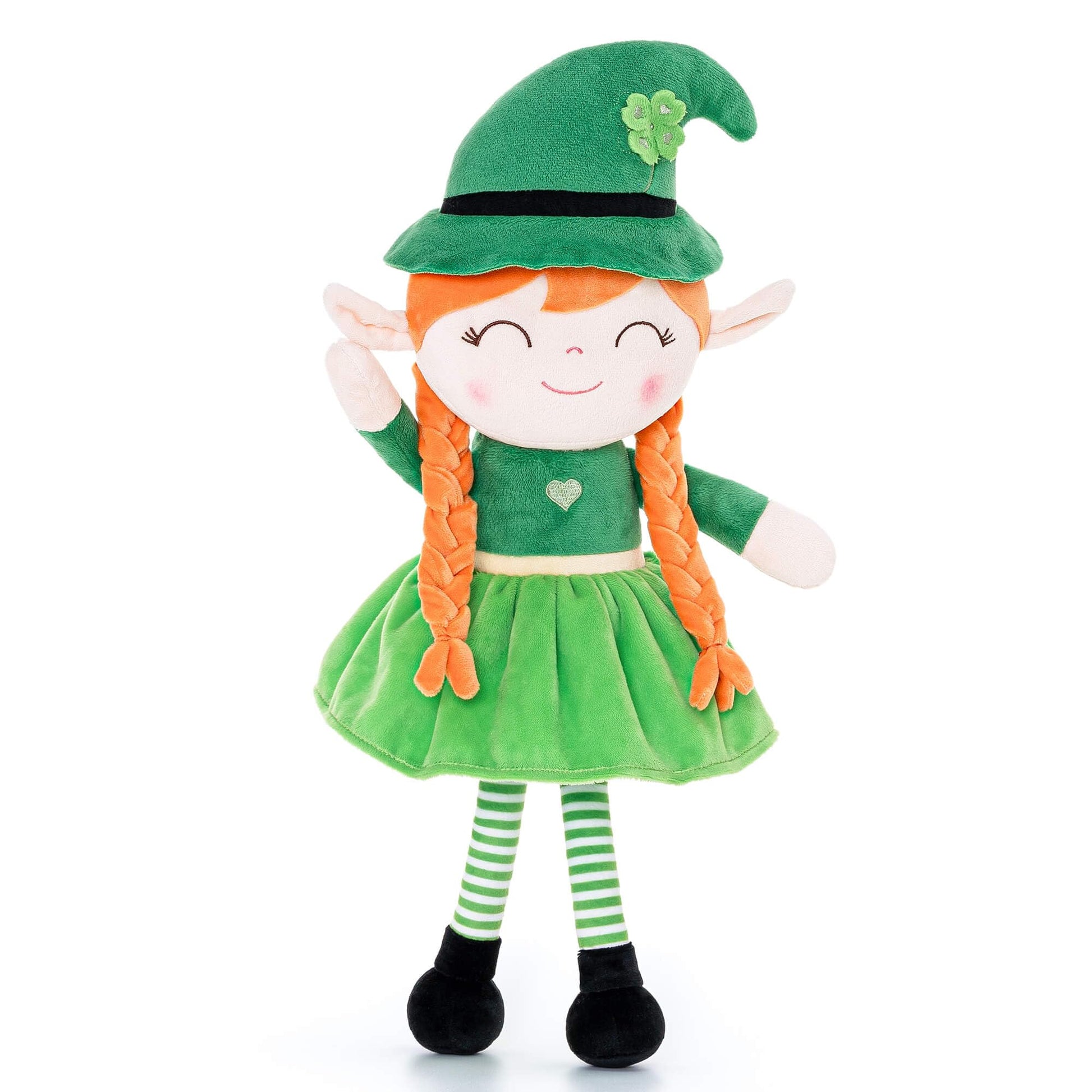 Gloveleya Plush Dolls Saint Patrick's Day Gifts Soft Blessings Doll Shamrock Wishes Plush Elf Baby Girl Gifts 16'' Green