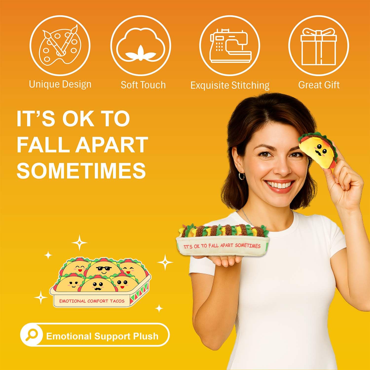 Turn your stress into smiles with the Emotional Support Tacos Plush Set-featuring 6 irresistibly cute tacos, each with its own expression, all served on a colorful plush plate inspired by Mexican design and printed with a bold emotional message. Whether youre looking for a funny office desk buddy, a unique gift for your taco-loving friend, or a comforting kawaii plush set to brighten your mood, these tacos deliver flavor-packed joy. Soft, squishy, and full of personality, theyre perfect for anxiety relief, coworker appreciation, or playful d cor. Keep them all together or share the taco love-because more tacos always means more comfort.
