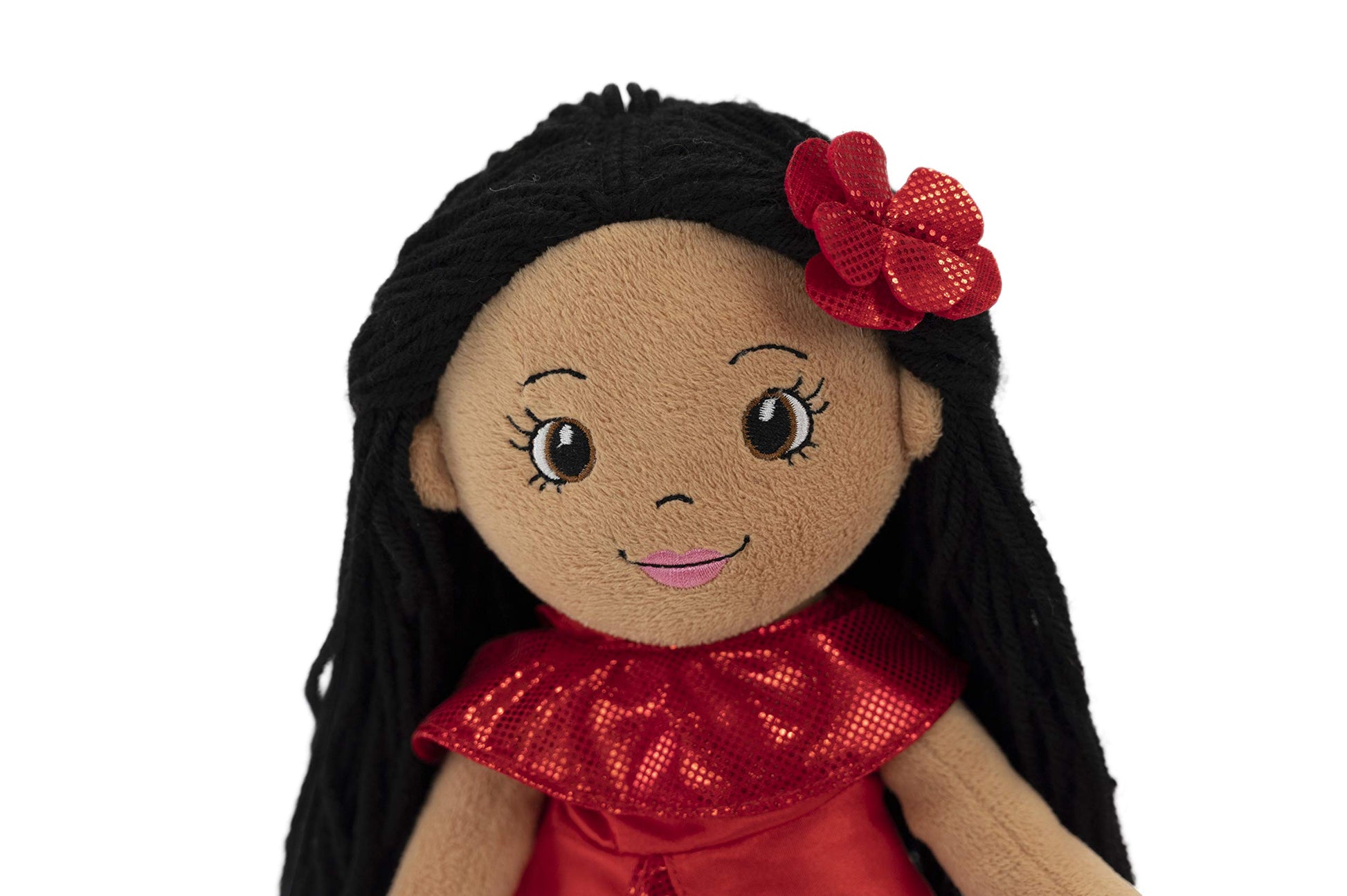 Meet Julie, your child's new bestie! She's a 14-inch soft babydoll with beautiful black hair and dark brown eyes. Julie is part of a super cute collection of plush dolls that are perfect for little ones. Her soft, cuddly body makes her an excellent companion for sleep or play, and she's just the right size for small hands to hold. Julie isn't just adorable; she's also practical. Made from soft plush fabric, she's washable, which means you can keep her clean and fresh for your child. This makes her ideal for everyday use, whether it's for bedtime snuggles or imaginative playtime. Plus, she comes dressed in a stylish red satin dress with matching accessories, making her a perfect gift for birthdays, Christmas, or any special occasion. One of the best things about Julie is that she solves a common problem for parents. Many dolls have small parts that can be unsafe for toddlers, but Julie's features are all embroidered, eliminating any choking hazards. She's also lightweight and portable, so your child can take her along on road trips, to daycare, or just around the house. Julie has some unique features that set her apart from other dolls. Her clothing is removable, allowing for outfit changes, and her design is crafted with love to be the perfect size for little hands. This makes her not just a doll, but a friend who can join in on all sorts of adventures. Safety and care are a breeze with Julie. There's no need to worry about small parts; her nose, mouth, and eyes are all embroidered. While she comes with a lovely dress and accessories, extra clothes are not included, so you might want to grab some additional outfits for her. Julie is a wonderful addition to any child's collection of dolls and is sure to bring joy and smiles to your little ones playtime.