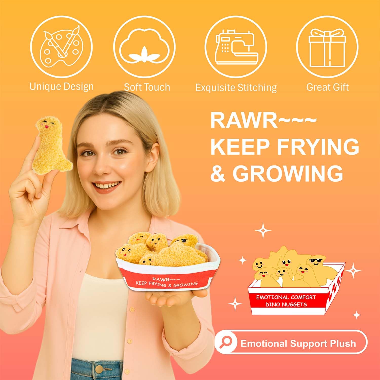 Positive Emotional Support Dino Nuggets Plush Toy, 6 Cute Stuffed Chicken Nuggets in 1 Soft To-Go Box, Inspirational Stuffed Ani