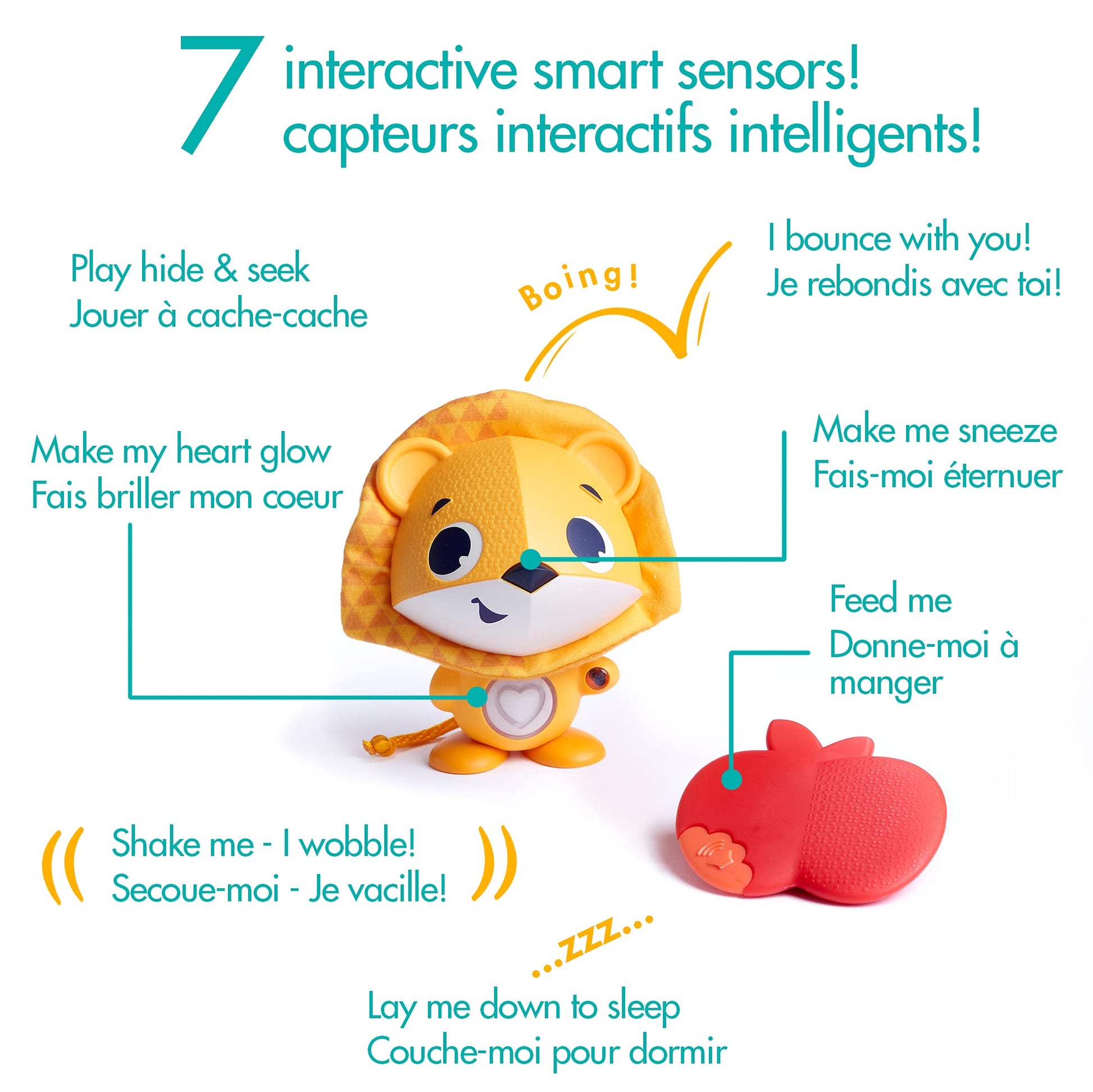 Leonardo the Lion is one of Tiny Love's Wonder Buddies that does wonders for your little one's development. The lion toy has smart sensors that allow for interactive play, making games like playing peek-a-boo even more fun! Wonder Buddy Leonardo will become their best friend. 12+ months Playing 'peek-a-boo' is the ultimate games for children at this age. Discover the cheerful sounds that Leonardo makes, when you cover the Wonder Buddy in a cloth. Play along and enjoy the precious time with your little one. 12-18 months Let your little one play with the interactive Wonder Buddy by themselves, allowing them to discover its features on their own. Playing and discovering the various features independently, teaches your child about cause and effect. 2+ years Wonder Buddy Leonardo becomes their new best friend. Play hide-and-seek or feed Leonardo to hear him nibble. Their close relationship will encourage independent play, for your little one's imagination to develop even further. 7 Developmental Wonders Each Wonder Buddy includes 7 complimentary play cards to inspire and add fun stories to tell. Your toddler will be laughing with delight as well as stimulating the following developmental wonders: emotional intelligence, fine motor skills, imagination and creativity, gross motor skills, cognition, language and communication and senses.