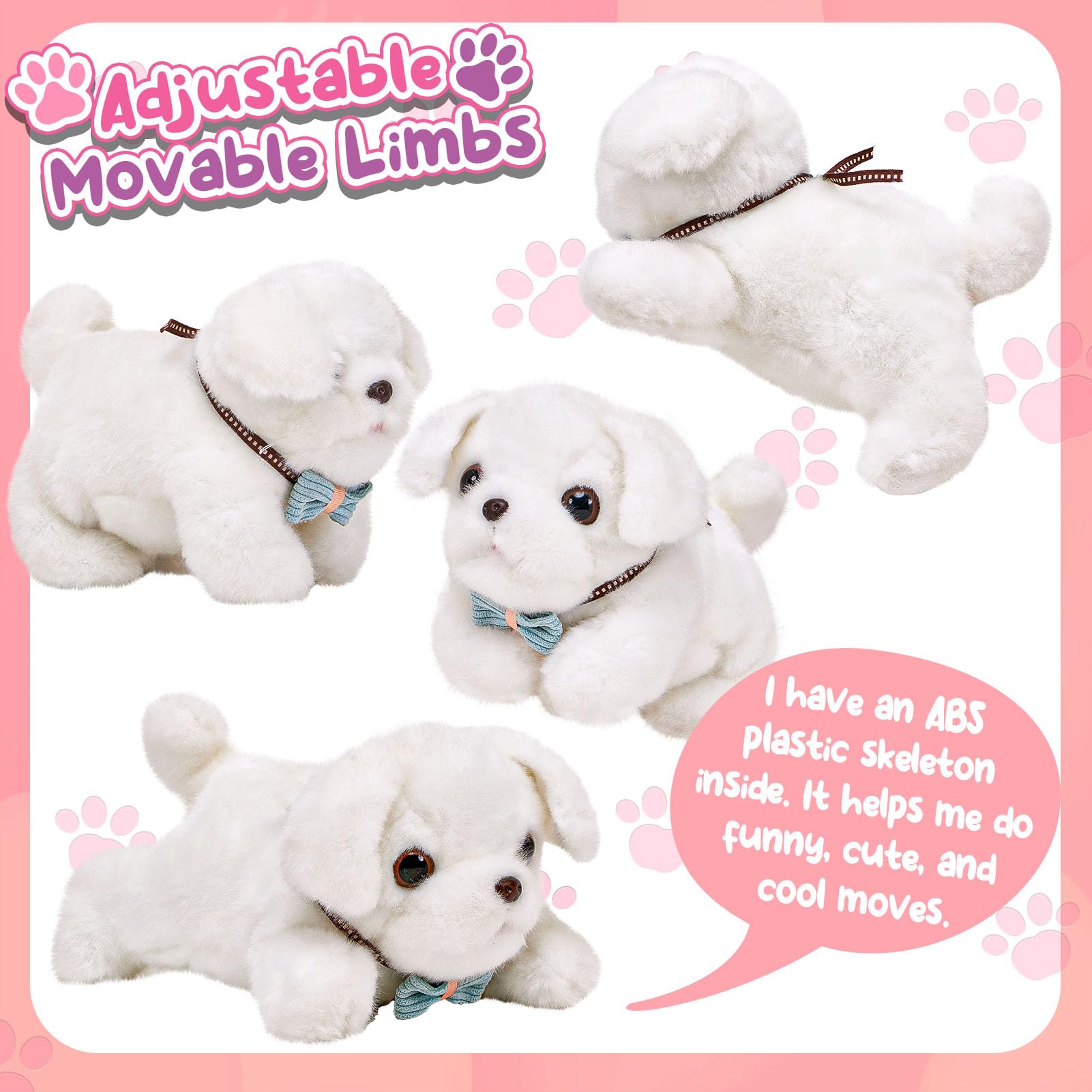 Golray Toy Dog for Kids Girls, Stuffed Dog with Heart Beat & Skeleton Transform, Sling Carrier & Toddler Girl Toy Kid Plush Pupp
