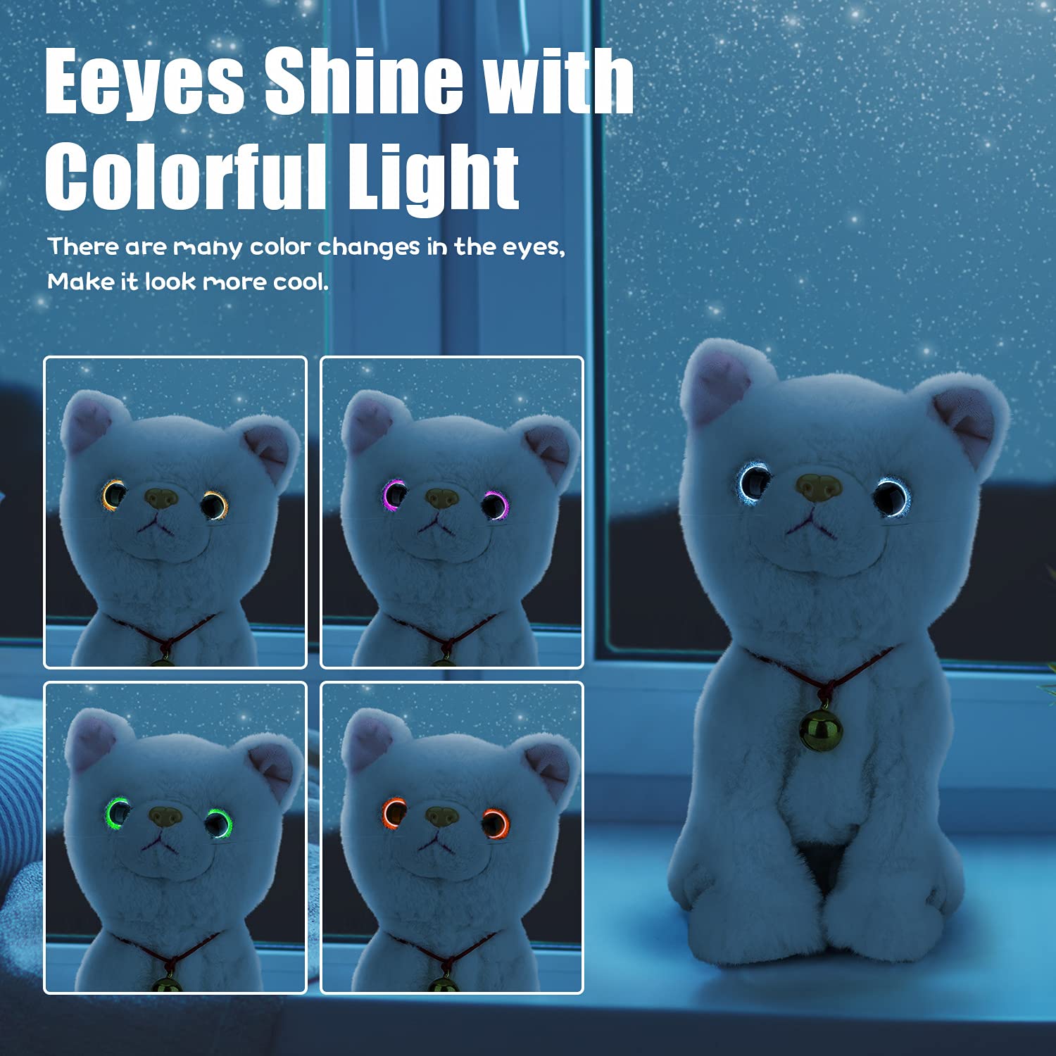 ?WHO AM I?Hello, my little master! I am a very adorable robot cat and look like a real one. I can jump, you just a touching tap or hand claps, I will walk up to you and meow, and of course, I hope you like it or follow along with me. With versatility, I have my little emotions, I will make a cute meow and make an unfortunate hoarse noise.