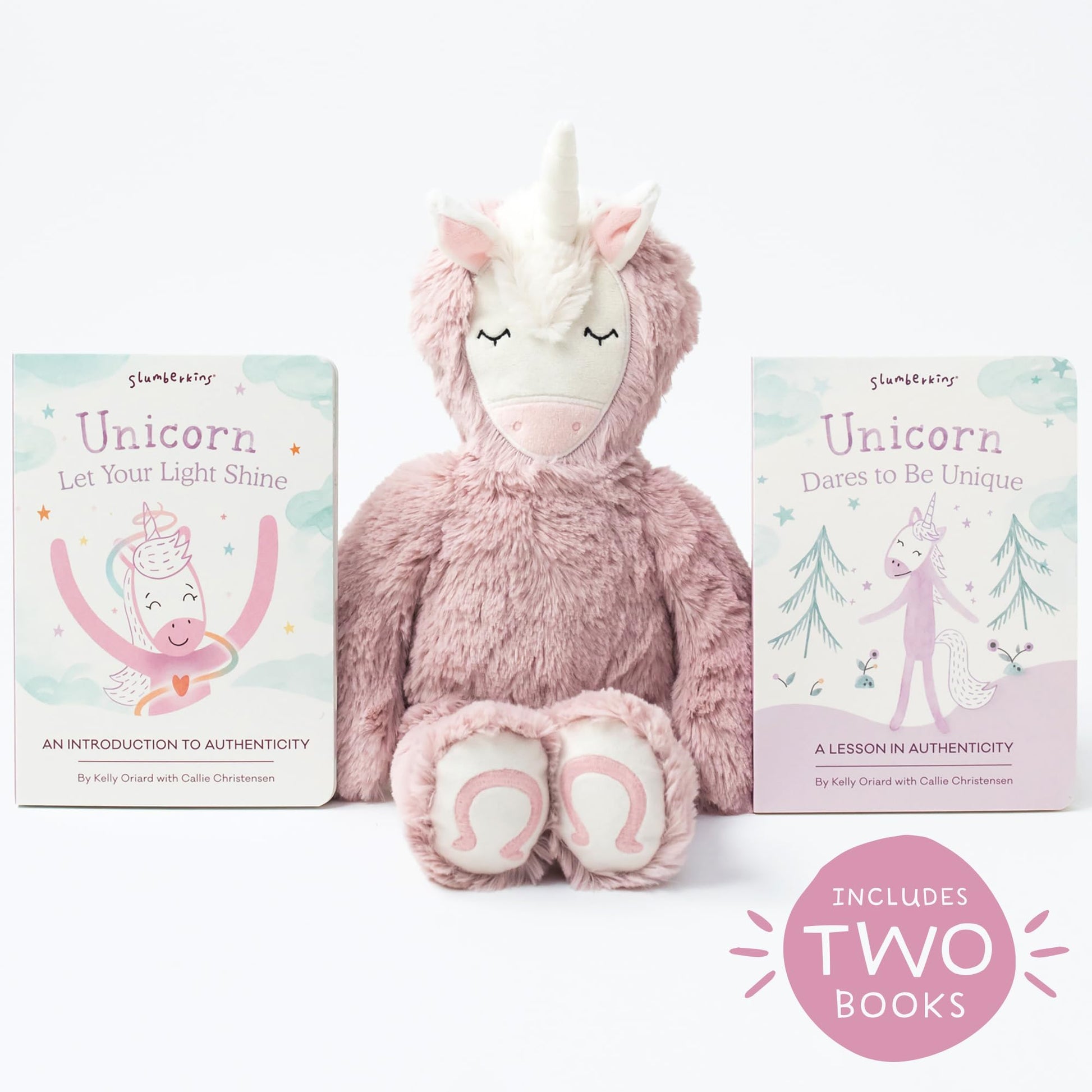 Slumberkins 14'' Unicorn Kin & 2 Board Books Complete Set Bundle | Promotes Authenticity, Confidence & Healthy Friendships | Soc
