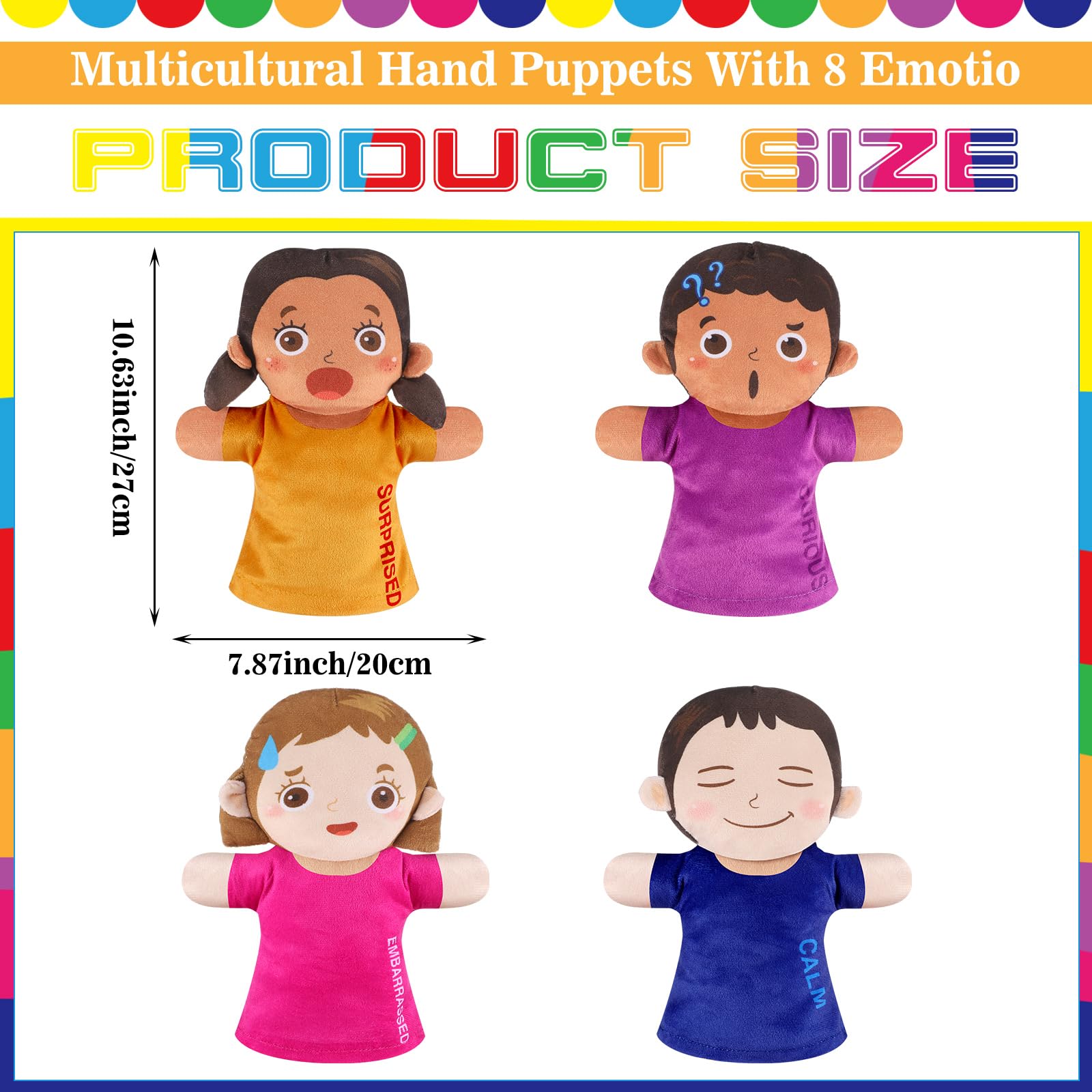 View compareGemscream 8 Pcs Feelings Hand Puppets with 8 Emotions Soft Plush Multicultural Puppets Ventriloquist Emotion Dolls for Social Em