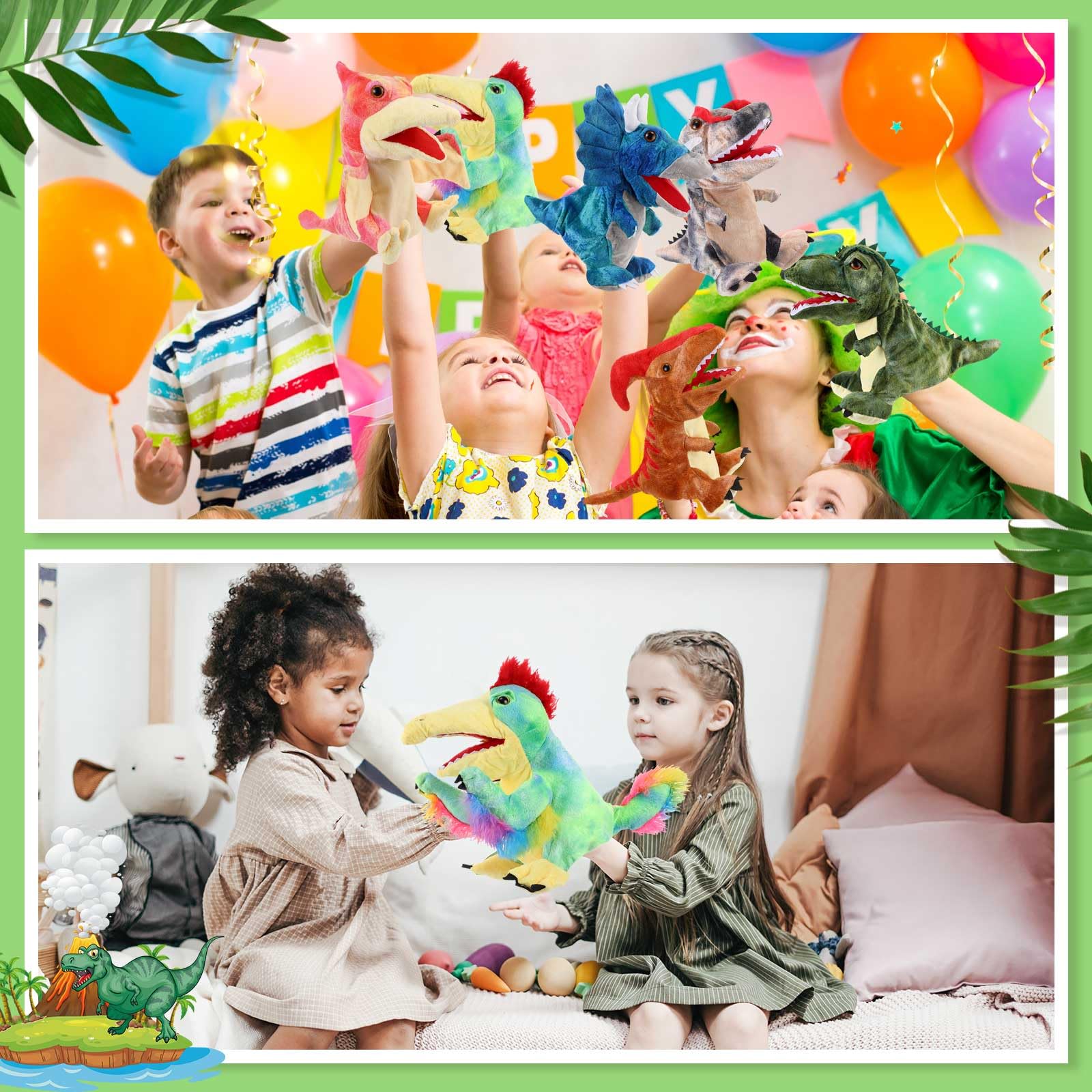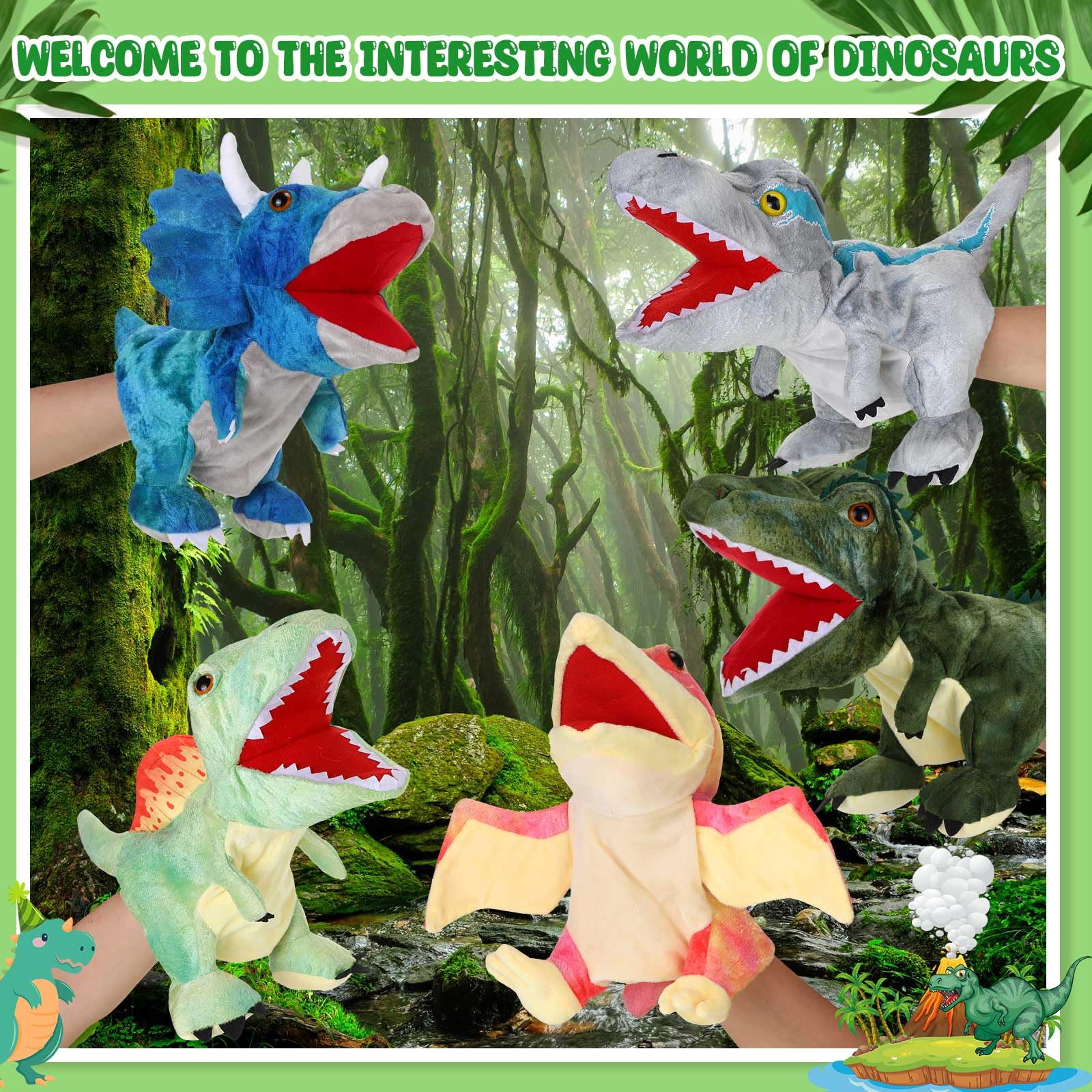 View compareWettarn 10 Pieces Dinosaur Hand Puppets 11.8 Inch Plush Stuffed Animals with Open Movable Mouth, Stuffed Animal Puppets Interact