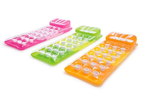 Enjoy relaxing and floating in the pool with the Intex 18-Pocket Fashion Mat Lounges. Designed with two-tone colors, two air chambers, and coil-beam construction. This sturdy lounger has an I-beam pillow for extra comfort while you float!