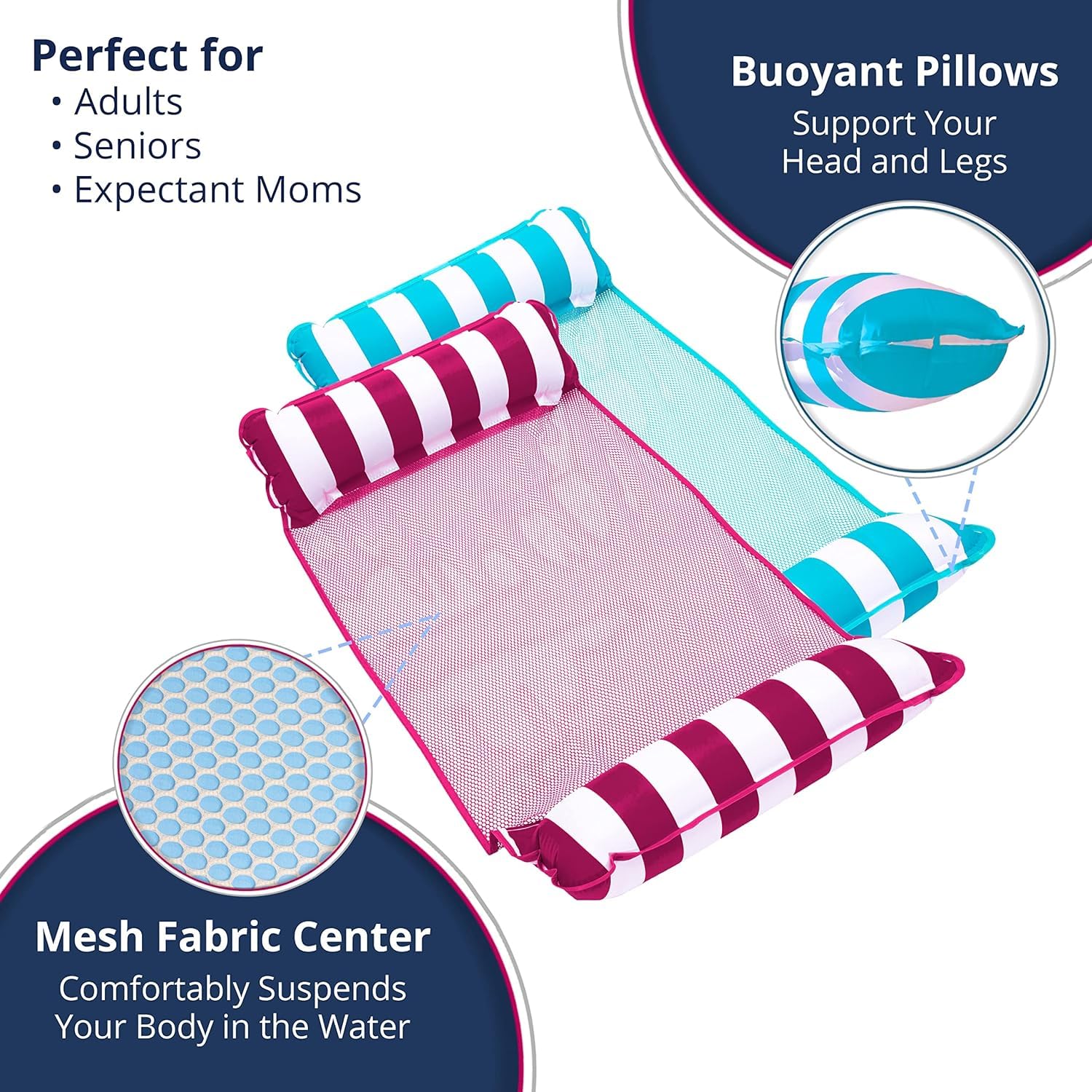 3 Pack - Aqua Original 4-in-1 Monterey Hammock, Inflatable Pool Floats for Adults, Patented Thick, Non-Stick PVC Material, 2 Lig