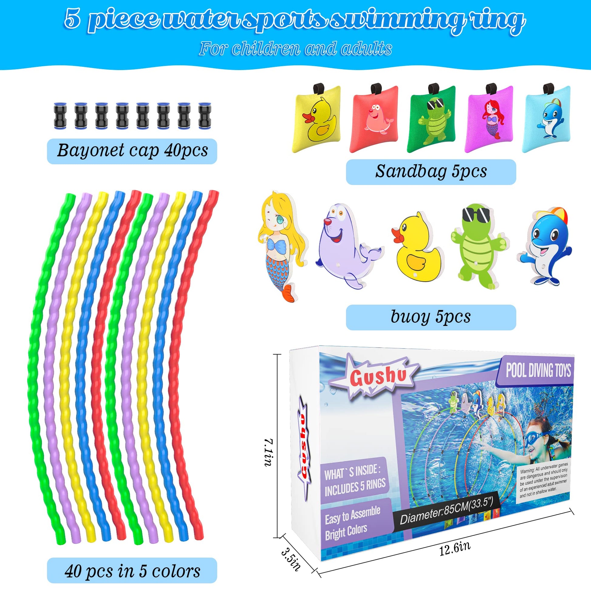 View compareGushu Diving Toys 15 Pcs Pool Toys For Kids Age 4-8 8-12 Water Swim Thru Rings With Buoys And Sandbags Underwater Training Progr