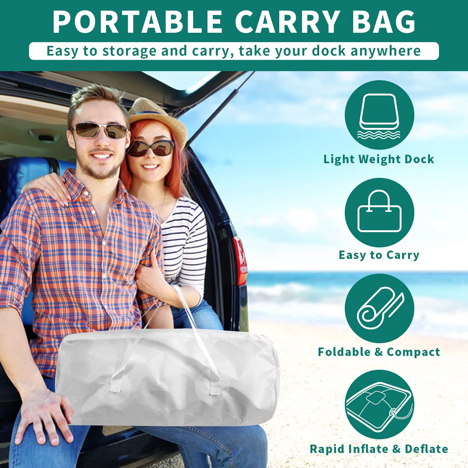 - Q: How do I inflate the inflatable dock? A: The inflatable dock comes with a hand pump for easy inflation. Simply use the pump to fill the dock with air until it reaches the desired firmness.